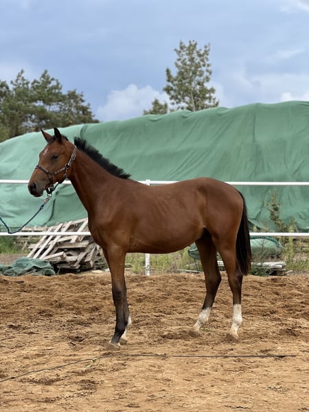 For sale: a beautiful Anglo European Studbook stallion, born in 2024. Dark bay, with an expected height of 16.1 hh. An excellent candidate for show jumping enthusiasts, with potential to develop a successful sports career. Perfect for riders seeking a versatile horse with a high-quality pedigree. Please contact us for more information and to arrange a viewing.