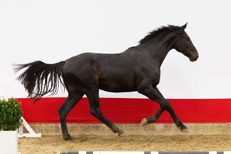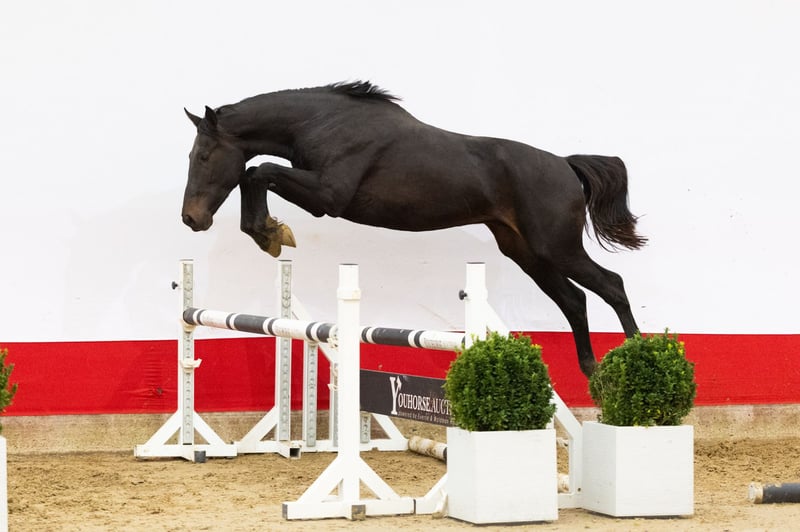 De tweejarige Thor Van Kenton’s Hof scoort hoog met zijn springvermogen. Een prachtige donkerbruine hengst met een mooi, grootramig model. Vader Nixon du Park is zeven jaar en springt al internationaal 1.40m met Sophie Steenbakkers. Het is een halfbroer van de tienjarige Panamarenko Optimus (1.55m GP) en de achtjarige Rosanna Optima (1.45m springen) uit een lijn van diverse 1.60m Grand Prix paarden. Moeder Charissa Ikaria is een dochter van Viento Uno W (Numero Uno) x Charlie Z en daarmee een volle zus van Dee Jee (1.55m Grand Prix met Julia Madigan uit Canada). Haar zoon Kenzo vd Zwinkhoeve is 1.35m springen geklasseerd.