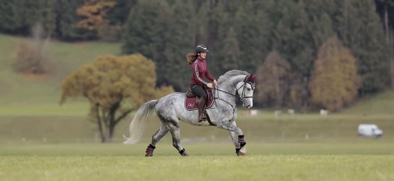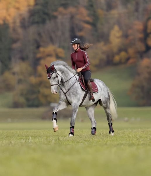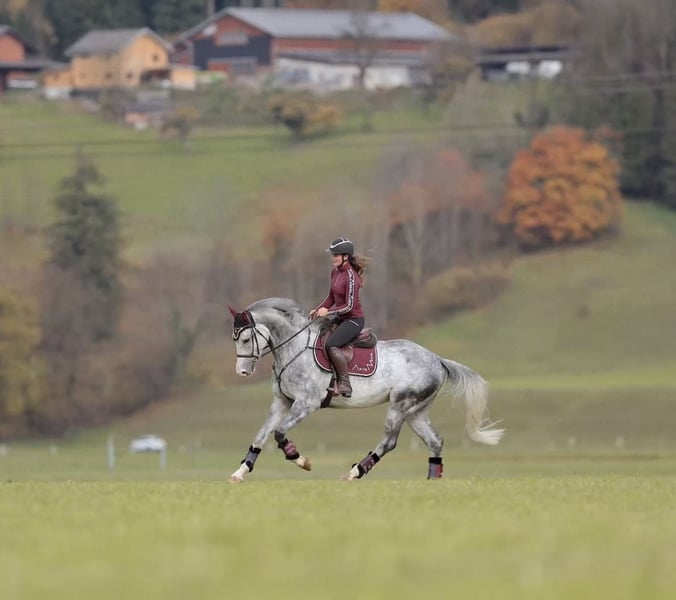 Domino d’aubry – 5-jähriger Wallach von Anayal d’aubry x Cartier van de Heffinck ✨ Ein echtes Qualitätspferd mit allem, was das Reiterherz begehrt! Domino überzeugt durch seinen Luxus-Charakter, seine beeindruckende Erscheinung (ca. 1,73 m) und seine Rittigkeit auf höchstem Niveau. Er verfügt über wunderschöne, elastische Grundgangarten, lässt sich leicht sitzen und punktet mit einem großen, kraftvollen Galopp. Am Sprung zeigt er sich stets mit Übersicht, Vermögen und Herz – springt immer auf die andere Seite, ist nicht guckig oder schreckhaft und vermittelt seinem Reiter jederzeit ein sicheres, gutes Gefühl. Domino ist fein im Maul, steht konstant angenehm an der Hand und beherrscht bereits fliegende Galoppwechsel. Im Gelände ist er absolut brav, ob alleine oder in der Gruppe, und auch Verladen, Transport und fremde Plätze meistert er souverän. Er war bereits auf dem Turnier und ist in einer Springpferdeprüfung erfolgreich 0 gelaufen. Er hat sich auch dort cool und abgeklärt gezeigt. Im täglichen Umgang ist Domino ein echter Schatz – verschmust, menschenbezogen, unkompliziert und sozial verträglich mit anderen Pferden. Ein Pferd, das wirklich jeden Tag Freude macht! 💫 📋 Klinischer TÜV und aktuelle Röntgenbilder liegen vor. 📞 Anfragen bitte ausschließlich telefonisch. 🐴 Probereiten: 30 €