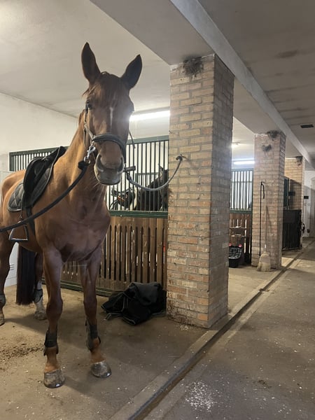 Nombre del caballo: La Luz de Croacia Raza: Studbook Anglo Europeo (AES) Sexo: Yegua Año de nacimiento: 2016 Color: Castaña Altura: 1.80 m (16.1 hh) UELN: 826002160877132 Asociación de cría: Studbook Anglo Europeo (AES) 🐴 Descripción La Luz de Croacia es una yegua AES de 2016 de excelente construcción, con un pedigrí excepcional que incluye líneas de sangre Holsteineras reconocidas y de gran prestigio. Se entrega con pasaporte completo del Reino Unido y toda la documentación necesaria. Tiene un temperamento tranquilo y amigable, es fácil de manejar y está acostumbrada a cuidados diarios y rutinas. Es adecuada para la equitación de ocio, doma básica, pequeños saltos, trabajo en tierra o como pony familiar. Ideal para jinetes que buscan un caballo confiable, bien educado y honesto. 🧬 Aspectos destacados de su pedigrí ✔ Padre: Lysston (Holstein) ✔ Madre: High Star (AES) ✔ Incluye líneas de sangre famosas como Ladykiller, Landgraf, Alme Z, Ramiro Z…