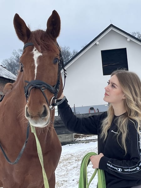 Imię konia: La Luz de Croacia Rasa: Anglo European Studbook (AES) Płeć: Klacz Rok urodzenia: 2016 Kolor: Kasztanowata Wzrost: 180 cm Numer UELN: 826002160877132 Stowarzyszenie hodowlane: Anglo European Studbook (AES) 🐴 Opis La Luz de Croacia to pięknie zbudowana klacz z 2016 roku, pochodząca z prestiżowego rodowodu AES, zawierającego silne i znane linie holsztyńskie. Posiada pełny paszport brytyjski oraz wszystkie niezbędne dokumenty. Ma spokojny i przyjazny temperament, jest łatwa w obsłudze i przyzwyczajona do codziennej opieki oraz rutyny. Idealna do rekreacyjnej jazdy, podstawowego ujeżdżenia, małych skoków, pracy na ziemi lub jako koń rodzinny. Doskonała dla jeźdźców poszukujących niezawodnego, dobrze wychowanego i uczciwego konia. 🧬 Najważniejsze informacje o rodowodzie ✔ Ojciec: Lysston (Holsztyn) ✔ Matka: High Star (AES) ✔ Zawiera słynne linie krwi, takie jak Ladykiller, Landgraf, Alme Z, Ramiro Z …