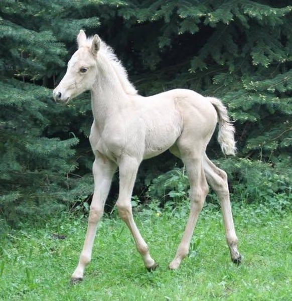 German riding horse | Dunalino (e/e, Cr/n, D/n) | born 2015 | 156 cm FABULA GF is a mare with an unusual colour, sporting pedigree and rare genetics: She carries both the cream and dun genes. Her sire is the internationally recognised thoroughbred stallion TCF Palladium xx, imported from Canada, who was the first smoky cream thoroughbred to be used for breeding in Europe. Her dam Funny Girl is one of the few dun warmblood mares with papers and thus combines colour with solid foundations. Fabula herself is rather reserved towards humans and needs time to build trust. She lives in an open stable, is familiar with everyday routines and is unproblematic in the herd. Due to her genetics, she is particularly suitable for breeding coloured, sport-oriented riding horses.