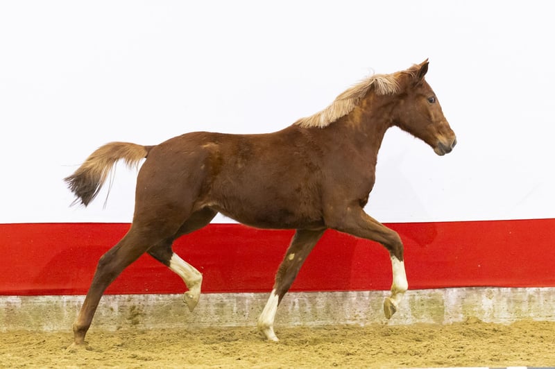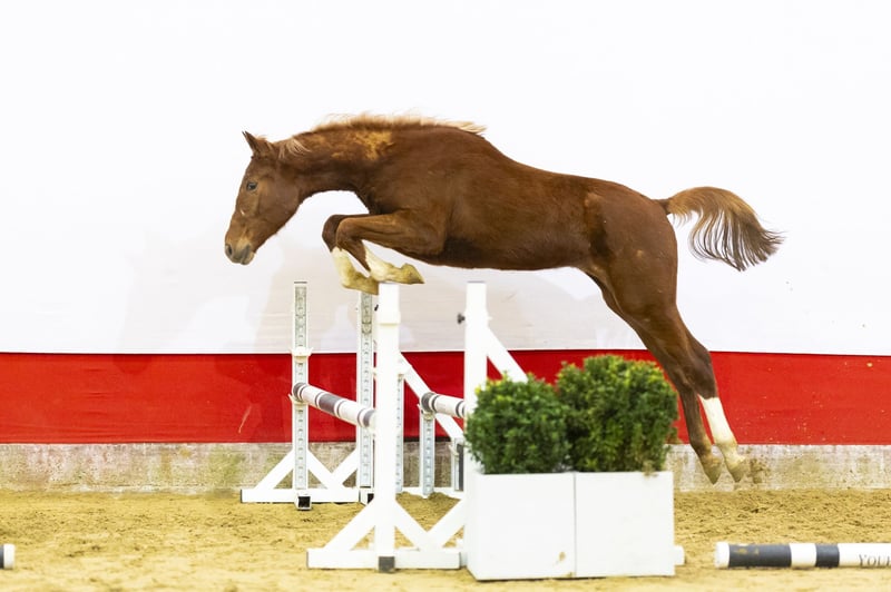 A true rough diamond. In her first jumps she already shows tremendous reflexes and outstanding quality over the fence. She jumps with a beautiful style and clearly has the foundation of very good technique. Beautifully uphill built, modern in type and light in her body. She appears to possess exceptional qualities, combining scope with technique. A young horse with clear potential to develop towards higher levels.