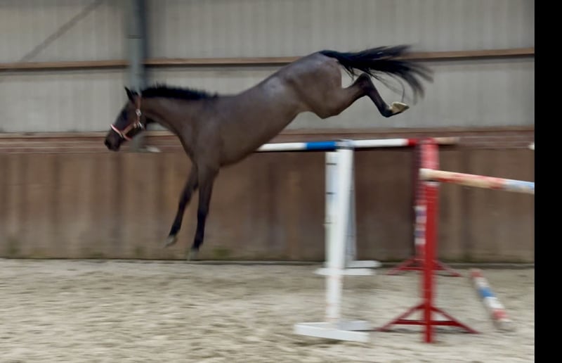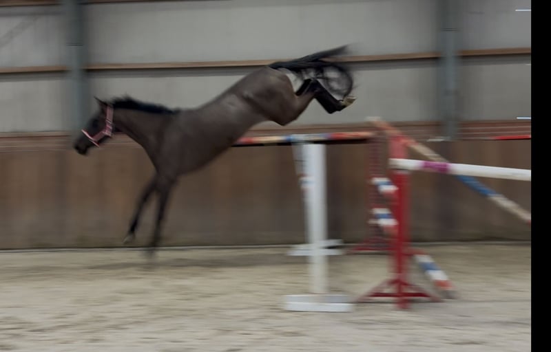 Graag stellen wij u voor aan Sarona jk. Sarona is een hele mooie merrie. Ze beschikt over een modern type. Ze beschikt over drie nette basis gangen. In galop kan ze makkelijk wisselen en toont al een goede balans. Op de sprong is ze voorzichtig en laat een mooie techniek zien waarbij ze achter telkens de sprong goed afmaakt. Deze merrie komt rechtstreeks van de fokker. Tot op heden is er nog niks mee gedaan. Dus dus nog groen en geheel naar eigen hand te zetten. Ze is recent klinisch gekeurd en ook zijn er röntgenfoto’s beschikbaar. Röntgenbilder liegen vor. Bij interesse graag bellen of appen: +31643197337