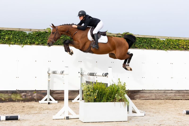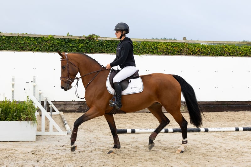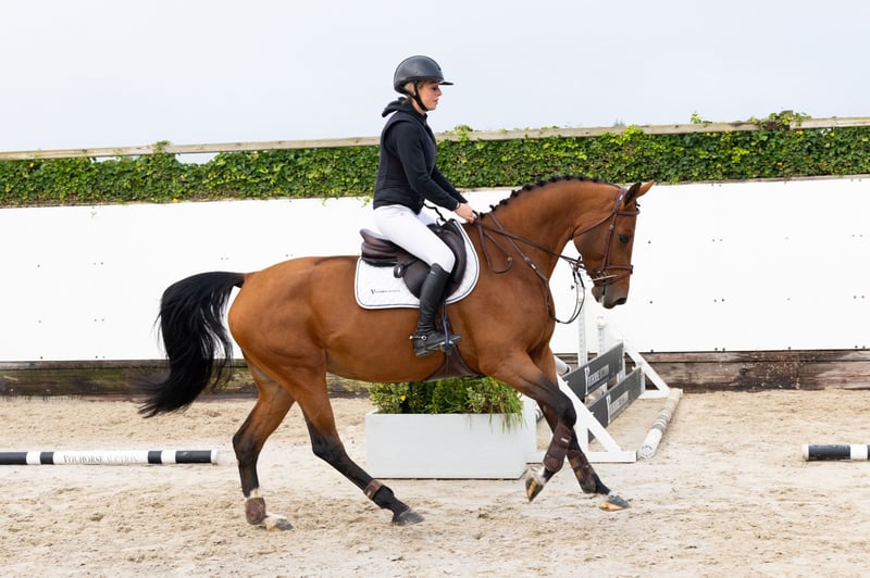 The five-year-old mare Plise BH stands out with her beautiful conformation and excellent jumping technique. She is also comfortable to ride and would not be out of place in the hunter ring. Her sire, Interadel BH (1.40m show jumping), is a son of Diamant de Semilly x Darco and a grandson of the 1.55m show jumping mare Intradella Z. Her dam, L’Alize Z (L’Arc de Triomphe), is a 1.50m show jumper rated with Gianni Govoni. Grandmother Quibell (Quattro B x Acord II) is a half-sister to the approved stallion Chaccomo Agostini (1.50m show jumping) and to two 1.40m show jumpers. The lineage traces back to Wella I, dam of the stallion Quaprice Bois Margot (1.60m Grand Prix), and the top mare Ornella (1.60m Grand Prix).