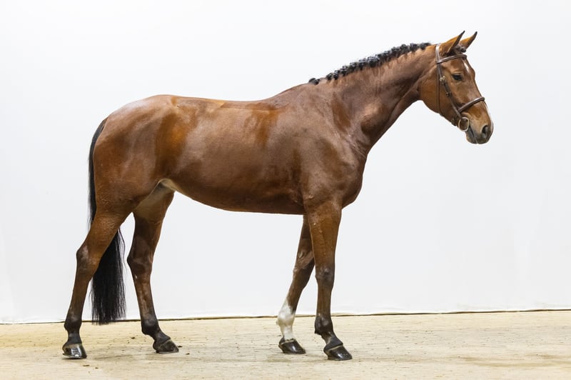 Cilla is a long-lined mare with plenty of blood and a very good jumping technique. She shows scope, technique and a strong, active canter. In the course she jumps with overview, quality and a positive attitude. She already has experience up to 1.30m and clearly shows the potential to go higher. A willing and pleasant mare to ride, offering confidence for further development. Her pedigree fully supports her sporting qualities. Sire Cellestial (Carolus I) competed up to 1.60m and is well known as a producer of modern, blood-type sport horses with technique and attitude. Grandsire Carolus I jumped at 1.50m level and carries the influential Capitol I bloodlines. Dam Grannus Robin Z (Graf Grannus) competed herself at 1.50m level and was successful internationally up to CSI4* 1.40m. Graf Grannus and Grannus are proven international sires of scope and sharpness. Granddam Robin Z (Robin I Z) competed at 1.30m level and produced several sport horses. The deeper damline is exceptionally strong. From this family come horses such as Sterrehof’s Eddie Blue (1.55m, placed CSI5* Hamburg), Hallilea (1.60m, winner CSI5*-W Göteborg) and Calvara Z (1.40m), alongside multiple international performers at 1.30–1.35m level. Influential sires such as Robin I Z, Mr. Blue, Zirocco Blue VDL, Calvaro Z and Burggraaf further underline the strength of this damline. Cilla combines a modern sport type with proven performance and an outstanding pedigree. A mare with quality, scope and clear prospects for higher level sport.