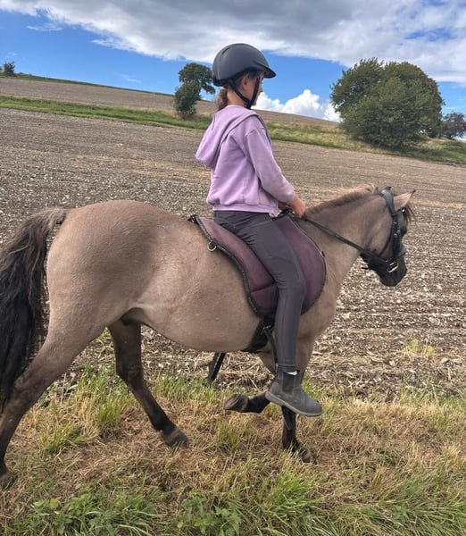 Unser wunderschöner Max sucht sein Herzensmenschen. Solange die Anzeige online ist sucht er noch. Aktuelle Longier und Reitvideos vorhanden. Wir haben ihn dieses Jahr gekauft von einer Familie wo das Mädchen ihm leider raus gewachsen war und wollten ihn für unsere Reitschule und haben dann schnell gemerkt das er damit nicht glücklich ist. Er macht alles ganz lieb und toll mit und will gefallen. Allerdings hat er ein zügigen Galopp der von den kleinsten (4-6jährigen) schwierig zu halten ist. Aber sonst auch für die kleinsten alles toll mit macht. Am liebsten wäre uns wenn er hier in unserem Aktivstall stehen bleiben könnte denn hier hat er tolle Pferdefreunde die er sehr mag und fühlt sich wohl. Aber natürlich darf er auch in ein passendes Zuhause umziehen. Wir können uns ihn auch für therapeutische Zwecke vorstellen. Max ist ein 1Ojähriges Tarpanmix-Pony mit einem Stockmaß von ca 1,25m und lebt in einer gemischten Herde. Und ist dort auch im mittleren Rang. Geimpft und entwurmt. Mit seiner Mausfalb-Farbe, der tollen dicken gewellten Mähne und dem Aalstrich ähnelt unser Max einem kleinen schicken Wildpony. Halbjährlich wurde er der Ostheopatin vorgestellt (zuletzt im Oktober 2025). Bei der Hufbearbeitung steht Max stets ruhig und brav. Max geht auch allein ins Gelände (geritten und zu Fuß). Dort läuft er auf jedem Untergrund zuverlässig in allen 3 Gangarten und lässt sich von kaum etwas erschrecken. Er geht gern ins Wasser und planscht darin herum. Bei einem Geländeritt mit mehreren Pferden läuft er zufrieden an verschiedenen Positionen in der Gruppe. Hat aber ein zügiges Grund Tempo. Er geht auch einwandfrei auf den Pferdehänger. Für Probe reiten nehmen wir 35 Euro. Wir bitten um eine kurze Bewerbung Anfragen wie wie ist der letzte Preis werden nicht beantwortet Transport wäre auch machbar