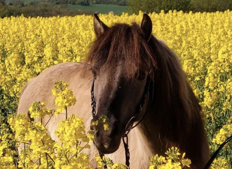 Our beautiful Max is looking for his special person. He is still available as long as this ad is online. Current lunging and riding videos are available. We bought him this year from a family where the girl had unfortunately outgrown him, and we initially wanted to use him for our riding school. However, we quickly realized that he is not happy in that environment. He is very gentle and willing to cooperate, always eager to please. However, he has a lively canter that can be difficult for very young children (ages 4-6) to control. Apart from that, he is suitable and well-behaved for even the smallest riders. Ideally, we would love for him to stay here at our active stable, where he has wonderful horse friends he really likes and feels comfortable. But of course, he can also move to a suitable new home. We could also see him being used for therapeutic riding purposes. Max is a 10-year-old Tarpan-cross pony, approximately 125 cm (12.1 hh) tall, living in a mixed herd. He holds a middle-ranking position within the herd. He is vaccinated and dewormed. With his dappled chestnut color, beautiful thick wavy mane, and dorsal stripe, Max resembles a small, stylish wild pony. He has been regularly checked by an osteopath twice a year (most recently in October 2023). During hoof care, Max remains calm and well-behaved. He is also confident riding alone in the terrain, both mounted and on foot. He reliably walks on any ground in all three gaits and is seldom spooked. He enjoys water and splashes around happily. During trail rides with multiple horses, he walks contentedly in different positions within the group, but maintains a lively pace. He also loads onto the horse trailer without any issues. A test ride costs €35. We kindly ask for a brief application. Inquiries such as "what is the last price" will not be answered. Transport can also be arranged.