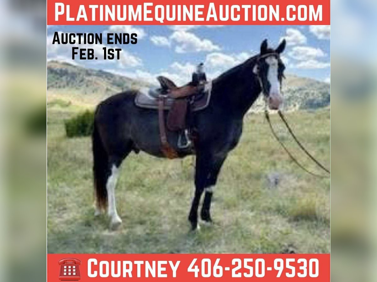 ONLINE AUCTION Place your bids at www.PlatinumEquineAuction.com Starting Bid $3500 Auction ends February 1st, 2026 Need a new saddle? Check out White Rock Saddles on our website or Facebook Ivar is a 9 year old Smokey Valley Tennessee Walking Horse gelding. He stands 15 hands high and is a gorgeous black sabino roan with plenty of chrome, natural collection and a lovely conformation. Ivar is a brilliant performance trail horse – bred for endurance and comfort. His 4-beat gait offers unrivaled smoothness and stamina. Ivar has a forward seeking nature and is incredibly responsive to light seat and leg cues. He has very solid feet, built to navigate rocky and uneven terrain and is currently rocking the barefoot look. He is well seasoned and well traveled, having covered many mountain ranges from east to west – Kentucky, Arizona, Wyoming, Montana and California – he’s truly been there, done that. Not only is this horse as smooth and pretty as they come, but he is sweet as pie. He would love nothing more than to be someone’s main ride and companion. Ivar is always willing and ready – you won’t have to catch this one in the pasture, he’ll catch you (see video!) He’s the puppy dog type and loves a good snuggle session. He’s an easy keeper, stands peacefully for the farrier and to be groomed, saddled and bathed. He’s a perfect gentleman on the ground and loads with ease like the sophisticated traveler he is. This one’s special and I could talk about him all day, feel free to call Courtney Maddux 406-250-9530 with any questions. UTD on vaccines, clean vet check on file. Sound and straight legged – PPE available at buyer’s expense. Located in Jacksboro TX, but can help arrange shipping nationwide. ONLINE AUCTION Place your bids at www.PlatinumEquineAuction.com Starting Bid $3500 Auction ends February 1st, 2026 Need a new saddle? Check out White Rock Saddles on our website or Facebook