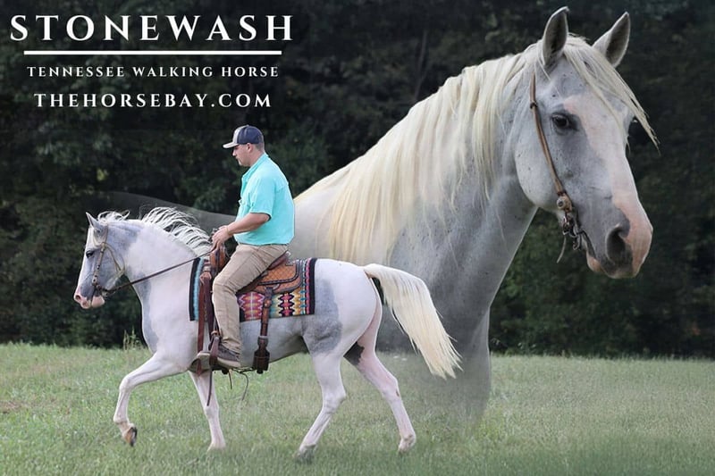 Damals waren stonewashed Jeans cool und absolut im Trend! Dieser wunderschöne graue Tobiano-Wallach ist einfach zu cool und DER Stil!!! Stonewash ist ein 10-jähriger, super robust gebauter Tennessee Walking Horse Wallach, der ein großartiger Trail-Pferd mit viel Erfahrung und dem geschmeidigsten 4-Takt-Gang ist! Stonewash bewegt sich in einem super schönen, seidig glatten Gang, der dich mühelos in die Stadt bringt. Er wurde auch bei lokalen Samstagabend-Veranstaltungen gezeigt und hat Schleifen gewonnen. Er meistert das anspruchsvollste Terrain und die tiefsten Bäche, die man sich vorstellen kann. Stonewash wurde auf den Trails verschiedenen Wildtieren ausgesetzt und nimmt das wie ein Champion. Er hat Rehe und Wildtruthähne gesehen, die über den Weg fliegen, und zeigt dabei keine Regung. Er ist verschiedenen Fahrzeugen begegnet, darunter Lkw, Busse, Motorräder und schwere Maschinen. Wenn du nach einem langlebigen, robusten und erfahrenen Trail-Pferd suchst, ist er der Richtige für dich!
