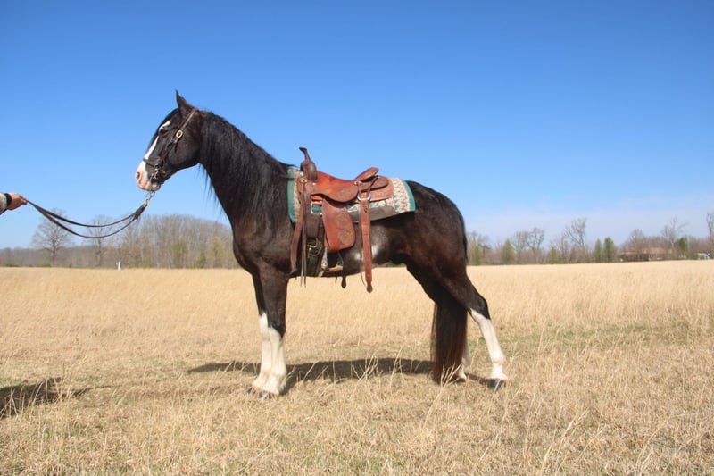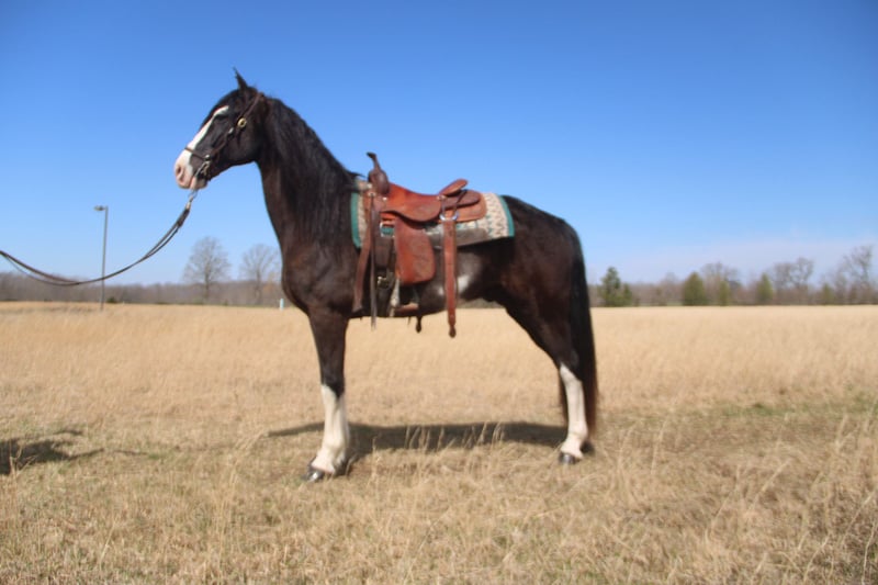 ONLY AVAILABLE AT https://fieldtrialtotrail.com/listing/banjo This is banjo a 15.2 hh Tennssee walking horse gelding , banjo has been trail ridden over over , ride front , middle or back ! He stands for farrier , loads unloads, tacks up quite ! We have squirrel hunted off him he’s leads the dogs with no problem! Banjo has a OUT STANDING running walk , will step up and hit a little 4 beat or you can take ahold of him he will ride 16/17 MPH with lots of style ! Anyone who knows the basics of riding can ride this guy ! You can take him the the fun shows and WIN All the walking classes with him he has lots of stride and a big running walk head shaking gear ! He can absolutely cover some ground ! He crosses creeks , logs, water etc! Been on lots of over night camping trips !