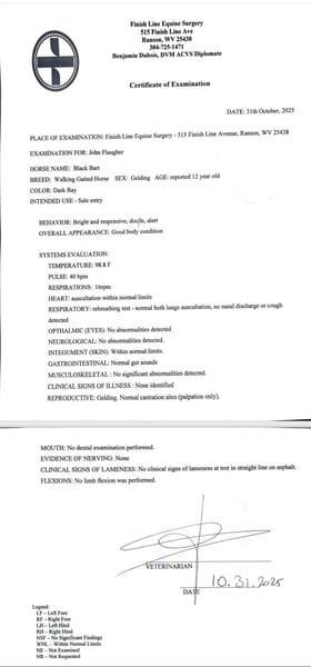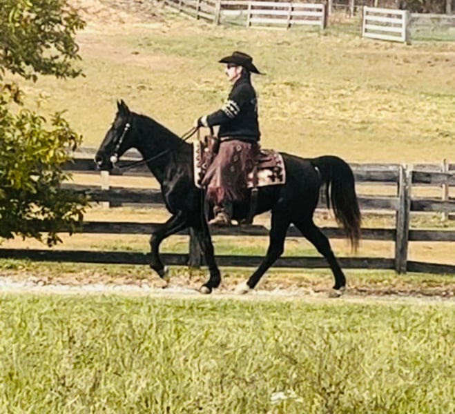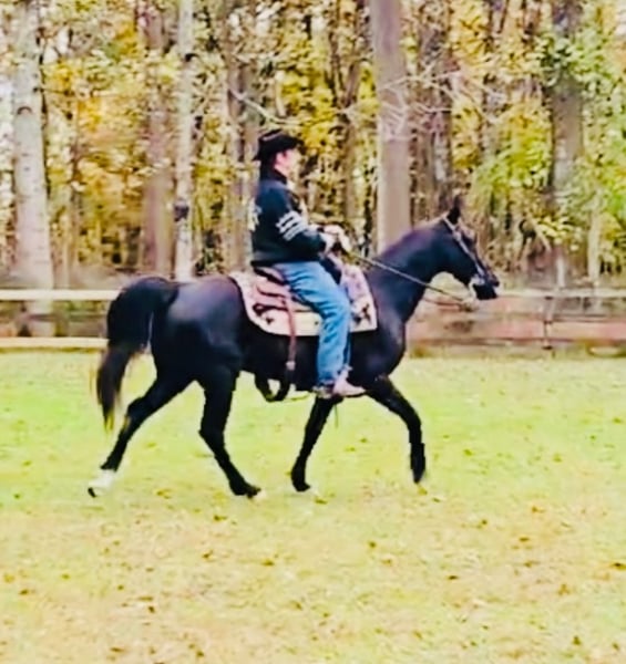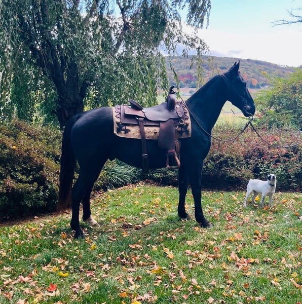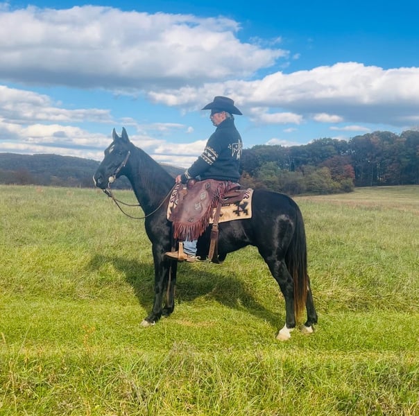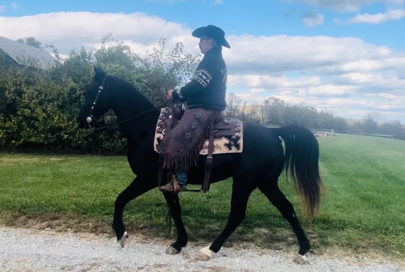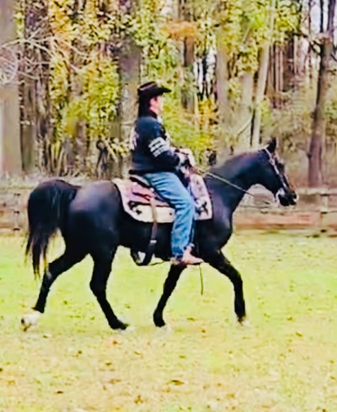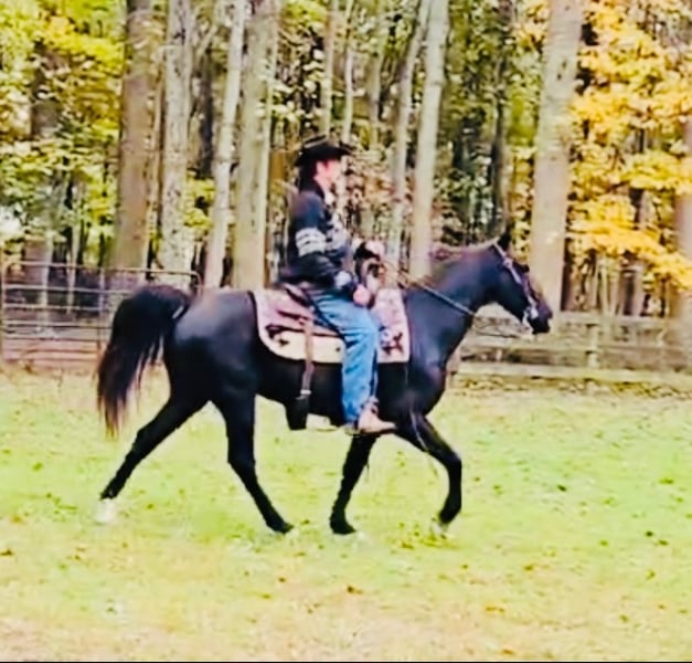 "AVAILABLE ON ONLINE HORSE AUCTION AT www DOT MagicHorseAuction DOT com BIDDING OPEN NOW thru TUESDAY | December 9TH! - BUY IT NOW AVAILABLE! *Final price will be determined on auction site* CONSIGNOR CONTACT INFO: John Flaugher 717-414-4211 LOCATION: Waynesboro, PA Black Bart is a fancy black Tennessee Walking Horse gelding that stands 15.1 hh and is 12 years old. he's good broke and great on the trails with enough steam to take you on all day trail riding adventures. Bart has been shown and trail ridden all over. He crosses logs, bridges, streams and is good on the roads with traffic. Bart gets along with both mares and geldings in the field. He ties anywhere with no problems and jumps right on the trailer. Don't miss this stunning gelding that's always an eye catcher anywhere we've taken him. Bart sells with a fresh vet exam of soundness, new coggins test, just had his teeth floated on 10/23/2025 and got 4 new shoes. He was updated on all his vaccinations on 10/31/2025. He is Nationwide transportation is available.