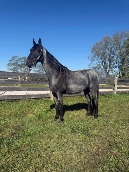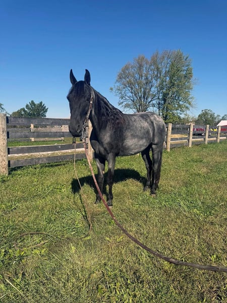 "AVAILABLE ON ONLINE HORSE AUCTION AT www DOT MagicHorseAuction DOT com BIDDING OPEN NOW thru TUESDAY | December 9TH! - BUY IT NOW AVAILABLE! *Final price will be determined on auction site* CONSIGNOR CONTACT INFO: Zach Brandenburg 513-508-3684 LOCATION: Moscow, OH River is a extra handsome classic blue roan gelding, this is very experienced trail gelding that truly has logged more trail miles than most 2 or 3 horses combined, he has been to countless big trail rides in several states as well trips out alone as well. River is nice correct gelding that knows his job and is fun to ride. He has a smooth gait and is uncomplicated to ride. River is a forward moving horse that likes to gait when ready, he is an easy keeper and maintenance free. River gets along with other horses and is truly a pleasure to have around, he does great turned out or stalled. River not only stands for mounting but will park out on command making him easier to mount. This horse has been there done that and seen the sights. If you want drama free and worry free here he is wrapped in that beautiful blue roan coat!
