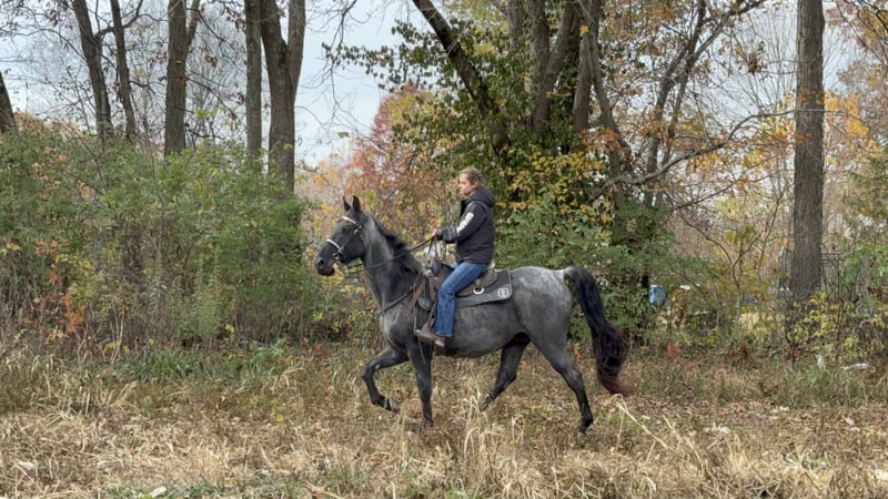 VERFÜGBAR bei der Online-Auktion auf www.MagicHorseAuction.com GEBOTE sind jetzt offen bis Dienstag, 9. Dezember! – SOFORTKAUF MÖGLICH! *Der endgültige Preis wird auf der Auktionsseite festgelegt* VERKAUFER-KONTAKT: Zach Brandenburg, 513-508-3684 STANDORT: Moscow, Ohio River ist ein äußerst attraktiver, klassischer Blue Roan-Wallach. Er ist ein sehr erfahrener Trail-Gelding, der mehr Trailkilometer gesammelt hat als die meisten zwei oder drei Pferde zusammen. Er war bei unzähligen großen Trailritten in mehreren Bundesstaaten dabei und hat auch schon alleine Ausflüge unternommen. River ist ein gut gebauter, korrekt gerittener Wallach, der seine Aufgabe kennt und Spaß am Reiten macht. Er hat einen sanften Gang und ist unkompliziert im Umgang. River ist ein vorwärts orientiertes Pferd, das gerne gaitet, wenn es bereit ist. Er ist ein leichter Pflegepferd und wartungsfrei. River kommt mit anderen Pferden gut aus und ist wirklich angenehm im Umgang, sowohl auf der Koppel als auch in der Box. Er steht nicht nur zum Aufsatteln, sondern kann auch auf Kommando ausparken, was das Aufsteigen erleichtert. Dieses Pferd hat schon viel erlebt und gesehen. Wenn Sie ein drama- und sorgenfreies Pferd suchen, ist hier genau das Richtige – eingepackt in dieses wunderschöne Blue Roan-Fell!