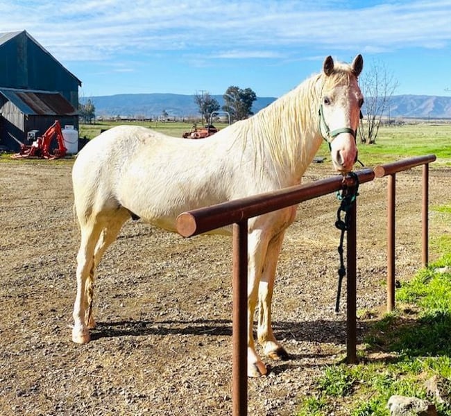 Discover the elegance and smooth gait of this stunning Tennessee Walking Horse gelding. Born in 2011, this impressive white gelding stands approximately 16 hands tall and boasts a gentle demeanor that makes him a pleasure to ride and be around. He's very loving and sweet-natured especially around children... Fun-loving, lots of personality! He has acted as a therapy horse for children with special needs. His natural gait provides a comfortable and enjoyable ride, perfect for riders of all levels seeking a reliable and smooth-moving partner. He has been under extensive training for over 4 years and is easy to handle. The owners are elderly and are broken-hearted they have to sell. A very fun ride!