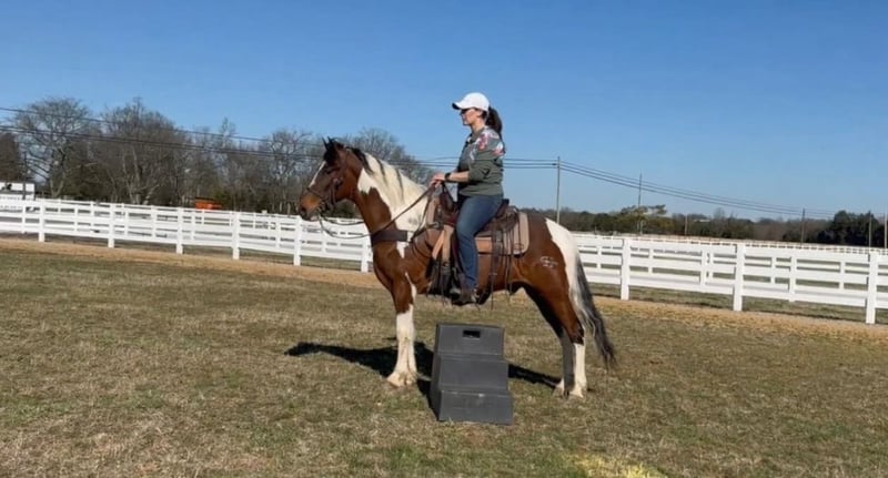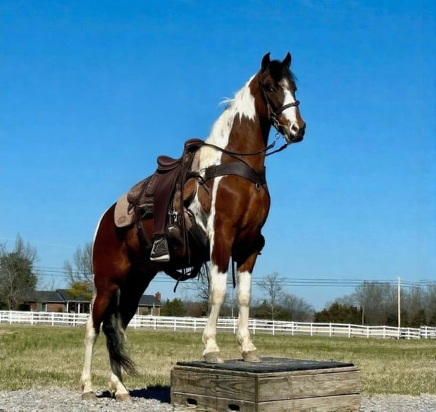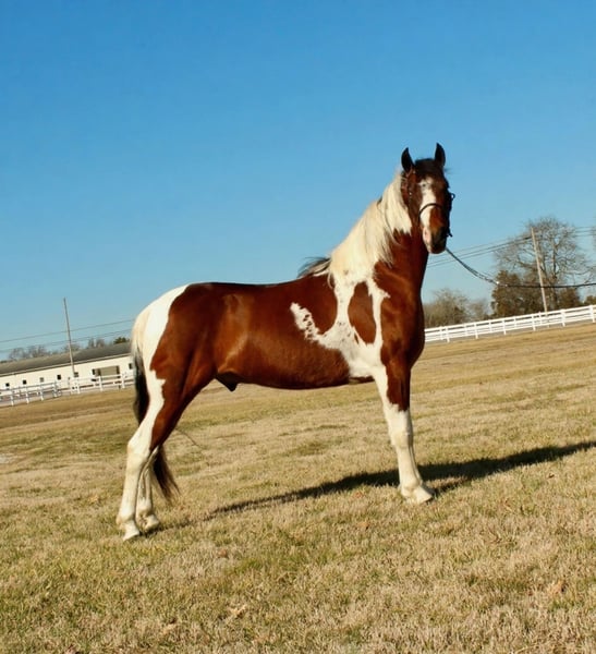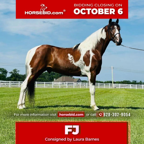 🍂 𝓐𝓾𝓽𝓾𝓶𝓷 𝑨𝑳𝑳 𝑺𝑻𝑨𝑹 𝑳𝑰𝑵𝑬𝑼𝑷 🍂 Happening now thru MONDAY | OCTOBER 6th - Available EXCLUSIVELY on HorseBid's website! For more details and to register visit: www.Horsebid.com CONSIGNOR CONTACT: Laura Barnes 828-302-9054 LOCATION: Lewisburg, TN BREED: AMERICAN GAITED HORSE REGISTERED: Yes REGISTERED NAME: Peter COLOR: Bay & White HEIGHT: 14.2 AGE: 5 GENDER: Gelding Meet FJ – 14.2HH, 5-Year-Old Registered American Gaited Gelding Ready to see a super smooth, fancy saddle gait? FJ is an exceptionally gentle and well-trained gelding, perfect for trail riding and adventure. His ideal size and ability to park out and stand like a gentleman at the mounting block make getting on and off effortless. FJ has a sweet, easy-going personality and loves attention. He has excellent ground manners, picks up all four feet, carries saddlebags, and confidently handles stumps and obstacles. His comfortable saddle gait makes him a pleasure to ride all day long. A seasoned trail horse, FJ has explored Laurel Hill, Short Mountain, Shawnee National Forest, and Seven Springs. He’s well-behaved for hauling and camping, rides confidently solo or in a group, and enjoys the company of other four-legged friends. Registered with the American Gaited Horse Association, FJ is the perfect combination of flashy moves, reliability, and a calm, safe temperament. He confidently crosses water, downed logs, vines, and mud while taking care of his rider.
