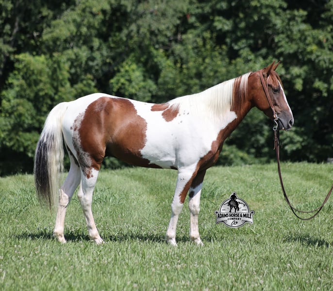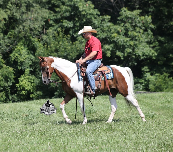 Deacon is a 15.1h, 5 year old, Tennessee Walking Horse gelding that is a beautiful chestnut tobiano color! He is Mr. Personality, as friendly as they come, loves attention and is very calm natured! Deacon has been ridden by every member of our family all the way down to our 7 year old and he is sure to help build your confidence levels! He has been ridden down the highways and he is traffic safe. Deacon is great on trails and he will cross creeks, ditches, logs and navigate rough rocky areas. He has a natural gait that is super smooth, he will lope, has a good stop, he neckreins some and backs. He has been exposed to all kinds of wildlife such as deer or turkey or other animals like cows or dogs and will go anywhere that he is asked too. He has been ridden many miles in the mountains of Eastern Kentucky and encountered every obstacle possible on the trail. He has been on several week long camping trips. He hauls well and picketline ties also. He will go up or down even the steepest slopes, across deep creeks, over downed trees, and over all types of rough terrain while still being sure footed. Dan has no bad habits! He truly is the horse of lifetime and we want anyone that is interested in getting to know Dan to just give us a call and everyone is welcome to come see him in person as well! Feel free to call Eric 606-308-2461 with any questions.