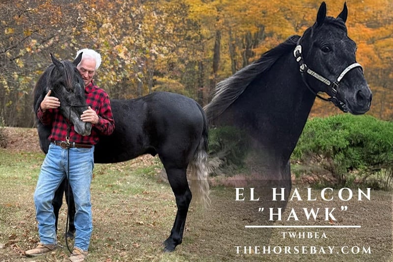 This horse makes a STATEMENT! His unusually gorgeous coloration is black roan with a silver mane and tail. “Hawk” has an incredible mind, enabling him to learn quickly while staying calm as he masters new tasks and navigates obstacles on the trails. He has earned a place as one of my all-time favorites. Hawk is always eager to learn and a joy to teach new skills. I can’t say enough about the pleasure this horse gives me to take along on trail rides and to just pleasure ride on the farm. He navigates rocks, logs, rivers, ledges, steep climbs and descents, waterfalls, caves, narrow crevices, and dense vines without getting anxious or nervous. Loud sounds, trucks, equipment, and dogs running between his legs never scare him. Hawk loads, hauls, and backs calmly from various styles of trailers. He ties to the trailer and stands quietly without pawing or annoying a nearby horse. New surroundings do not frighten him. He is always willing to do precisely as the rider wishes, including standing patiently as the rider mounts or dismounts. Hawk is only 4 years old but is an old soul in a young body. All ages of riders with varying levels of riding experience, and even children, would absolutely love Hawk as their forever horse and loyal companion. Hawk has all the attributes one could want in the perfect horse. He is gentle and kind, respectful, willing and eager to please, smooth at all gaits, always calm, and great with all riders, even those with the least experience. I highly recommend this handsome horse to everyone. Please call me if you would like to find out more or if you would like to come try him out in person.