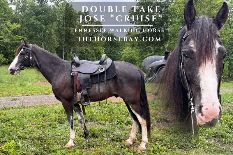 OPEN BIDDING ON THEHORSEBAY,COM. SALE ENDS ON 05/28 More information is available on the website, including an UTD vet inspection, Coggins, video, images, and the owner's contact information to ask questions, request information, or make arrangements to come to visit. Cruise is a handsome and stunning 16 hand Smokey Roan Tennessee Walker. He is double registered as a TWH and a Gaited horse. He just turned 7 years old on April 1 of this year. Cruise could not be more lovable and social. He follows us around the barnyard and sticks close with us if we’re doing any kind of work in the field. He has a very sweet attitude. He loves to gait and is ready to go when you get on him. He’s young and full of life and has done really well on the trails. He is excellent in the field with other horses and good around dogs and other animals. I named him Cruise as a barn name because that’s exactly the feel you get when you are on his back. One hardly moves when you are riding him because he is so smooth! Cruise loads well, loves a bath, loves to be groomed and loves his treats! He can be ridden English or Western. Cruise is very coachable and easy to learn new skills. He is extremely intelligent and wants to please! He is handsome and striking especially when gaiting with the way he holds his head and tail. He comes from the sire Jose Jose who won many ribbons in the ring.