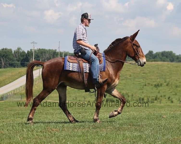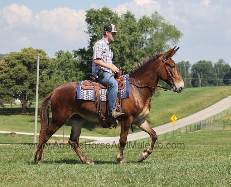 Go to visit our website for more pics and a video. AHAMC has been in the horse business and sold horses over the internet since 2005. We have a long track record of success with hundreds of happy customers. We work hard to match riders with the correct horses and specialize in beginner safe, family friendly horses that have been used and checked out by our family! Joe Burro is the type of mule that you often hear about but never see… until NOW!!! Joe is the most naturally gaited mule that you will find! He gaits like a horse and don’t tell him because he thinks he is one! Joe has no ear shyness or feet issues! He is a John (gelding) standing around 15.2hh and he is 7 years old. Joe has miles and miles of safe travels under his girth and with his experience and knowledge so he’s ready to take lesser experienced riders many more miles! Joe has done it all from camping trips in multiple states to local trails to fun shows. He will flatfoot walk on a loose rein or he can move on out if you ask. He has a smooth and natural gait that anyone will enjoy riding on and he can move out to around 11mph. Joe has been exposed to all kinds of wildlife such as deer or turkey or other animals like cows or dogs and will go anywhere that he is asked too. He has been ridden many miles in the mountains of Eastern Kentucky and encountered every obstacle possible on the trail. He has been ridden in traffic, and is very traffic safe around cars, semi, log, and dump trucks. If you are looking for that safe trail mule and want that 10/10 natural gait… Joe Burro is a touchdown! Feel free to call Eric 606-308-2461 with any questions.