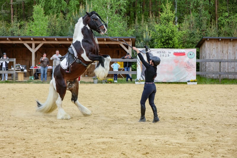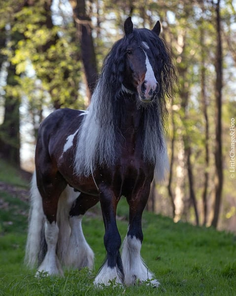 Przed Państwem Mister Darwin – 11-letni ogier o wyjątkowej prezencji i charyzmie! Licencjonowany przez ISC Nederland oraz wyróżniony prestiżową 1 premią STAR w PSHT, Mister Darwin to koń, który łączy w sobie znakomite pochodzenie z doskonałym charakterem. Na co dzień użytkowany zarówno ujeżdżeniowo, jak i w zaprzęgu, z łatwością odnajduje się w pracy i pokazach. To koń niezwykle kontaktowy, który z radością prezentuje swoje umiejętności – w tym także efektowne sztuczki, którymi potrafi oczarować publiczność! Mister Darwin to również sprawdzony i skuteczny ogier kryjący. Wyróżnia się stateczną naturą, zrównoważoną głową oraz imponującym, bujnym owłosieniem, co czyni go atrakcyjnym wyborem dla hodowców. Ogier jest całkowicie przebadany, wolny od PSSM, a także posiada gen homozygotyczny tobianum, dzięki czemu przekazuje efektowne, kontrastowe malowanie swojemu potomstwu. Co warte podkreślenia – wśród jego źrebiąt dominują klacze. To nie tylko koń pokazowy, ale również cenny reproduktor, który wnosi wartość genetyczną, urodę oraz wyjątkowy temperament do każdej hodowli.