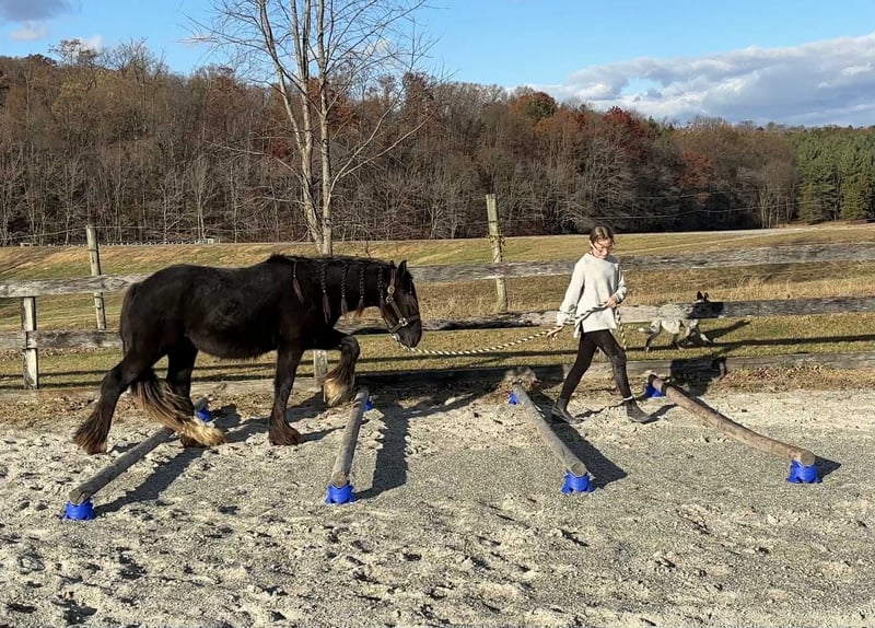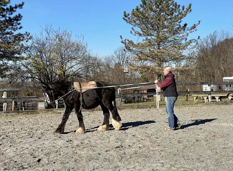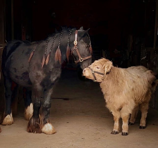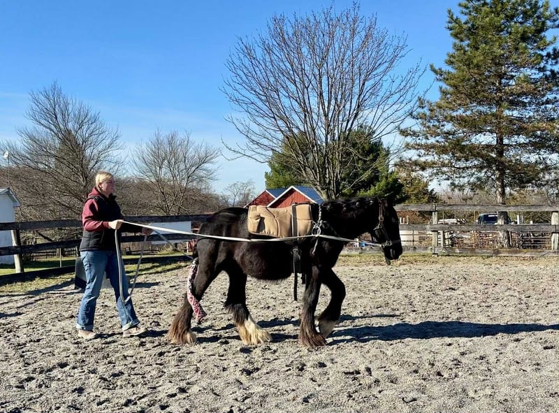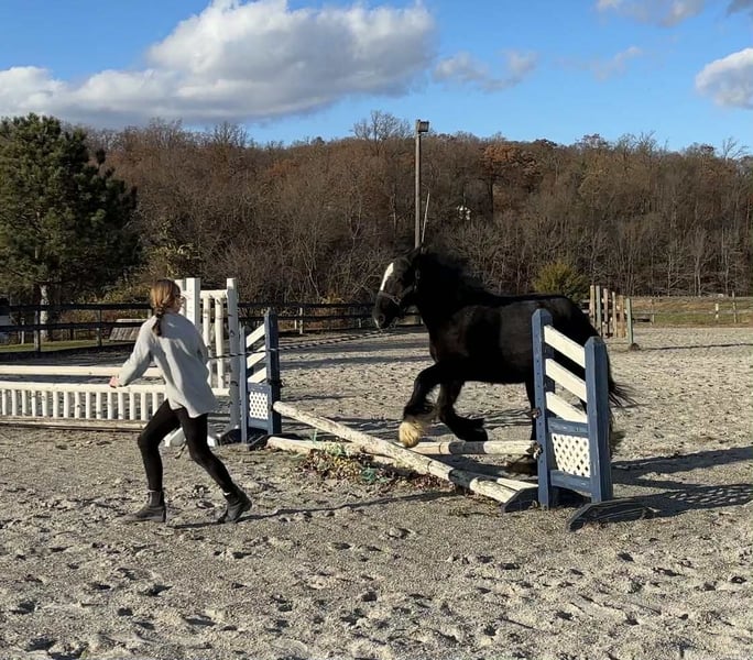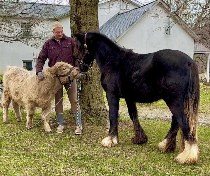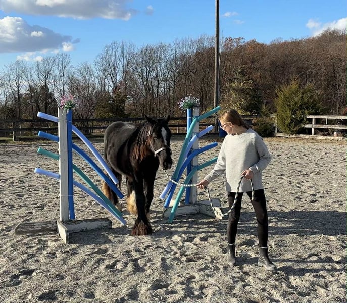"AVAILABLE ON ONLINE HORSE AUCTION AT www DOT MagicHorseAuction DOT com BIDDING OPEN NOW thru TUESDAY | December 9TH! - BUY IT NOW AVAILABLE! *Final price will be determined on auction site* CONSIGNOR CONTACT INFO: Roni Renee Turner 610-806-2613 LOCATION: New Holland, PA “Leafy Lane Slim Shady” aka “Shady”, is a registered Gypsy Vanner colt, foaled on April 16th 2024, currently standing 13hh, who already owns a lush mane, tail, and feathers. If you are looking for a phenomenal brain, wonderful conformation, great breeding, and the looks to pair, here is your guy. Not only is Shady as friendly as they come, he has a very calm demeanor and an old soul. This boy was quite literally “born broke”. I really cannot say enough of good things about Shady, he is going to make the perfect partner for someone who is looking for a loyal and gentle friend. In the barn, Shady has zero bad habits. He can live in or out, goes out with others happily and has zero bad stall habits. He is quiet in his stall, neat, and never complains or asks for anything. He can live out 24/7, he does not mind either way. Shady will always be the first one to greet you, he will follow you around like a puppy dog and loves attention. He cross ties and straight ties. Shady will stand on the cross ties all day long to be groomed, braided, loved on, you name it. He stands to be bathed as well. Shady is safe for absolutely anyone to work around. He is very gentle and safe for kids and beginners to work with. He doesn’t mind my rowdy dogs running all around his feet. He picks up his feet and is good for the farrier and vet. A crazy busy barn is not frightening to Shady, it is amusing and he will just sit there and chill and watch all of the commotion. Shady has excellent ground manners. He can be fully handled, led, caught, etc by beginners and children. He has had extensive ground work, and he was raised correctly. Shady has gone on hand walks through the woods, through trail obstacles, through water and fields, he is going to be an amazing trail partner in the future. The brain that this young man has, is just not comparable. Shady lunges, and listens to voice commands. He has been tacked several times and never once had a reaction. We have started him on ground driving as well; and again he caught right on and did what was asked. I don’t know if I have ever been around such a teachable yearling!! Shady has been through lots of desensitizing. He takes everything in stride and is pretty much unfazed by all of our crazy antics. He will walk over a tarp, even with it blowing right at him and getting caught on his legs. He doesn’t mind if the tarp is flapping 15’ in the air. He will play with a big ball, and doesn’t mind it being on or around him. We have waved a large flag all around him, he didn’t mind. He follows the wagon with a little “pony” in it, and was much more interested in eating the hay inside of the wagon lol. Atvs and other machinery? Traffic? No problem, he chases the Ranger in the pasture to catch us for hay. Lead him from the four wheeler. Dogs running all over? He doesn’t care. Cows? Cows are friends. Shady has also been introduced to trail obstacles such as walking through pool noodles, over ground poles, over flower boxes and even jumped a few cross rails in hand. He loads and trailers well, with or without company. Shady is going to be easiest guy to start, the hard part is done, here is a horse that is ready to start your way, and be your forever partner. Shady is sired by a stallion named “Monashee Toy Story”, a strapping sire who is beautiful marked. Also known as “Buzz” is considered a mini-Gypsy. He attended the 2023 Gypsy Vanner Congress and is known for his good demeanor and athleticism. Shady’s dam is named “Wellington Kenai”, who is a spitting image of Shady, with great conformation, big bone, and wonderful hair. She is a regular sized Gypsy. Shady is expected to finish at around 14.1-14.2hh. On his Sire’s side, the name “North Star Maestro” will be found, who is a significant representative of the GVH breed, possessing some of the best GV bloodlines. Shady’s top side also goes back to the famous “Bob The Blagdon”. On Shady’s bottom side, he goes back to “Romany King” and influential stallion known for his conformation, amazing temperament, and wonderful movement. Romany King earned a five star evaluation by the GVHS. Slim Shady has excellent breeding, in which has created an amazing all around yearling. Whether you are looking for an all around gelding or a herd sire, these bloodlines speak for themselves. Shady is PSSM1 n/n, FIS n/n, and a/a, E/e, N/W20. Here is a colt that is currently set up to head in absolutely any direction. He has been so wonderful to work with, teach, and have around. Shady is very intelligent, and loves to learn. I would love to have the opportunity to follow this boy and watch him grow and learn, I am very fond of him, the whole barn is. And while I would love to find him his forever person, I am not pressed to sell him, as I just know that he is going to be amazing and very easy to bring along. Please take the time to watch Shady’s full video to get a feel for the type of wonderful guy that he is. Please feel free to reach out for any further information. Shipping can be arranged anywhere.