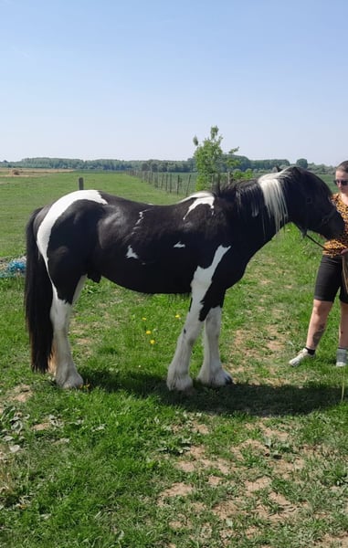 Helios is mijn eigen gefokte Irish cob hengst van mijn eigen Irish cob merrie. Voor een goed huisje bied ik Helios te koop aan omdat ik hem in de toekomst niet kan geven wat die nodig heeft. Helios (foto 1 tot en met 4) is de zoon van Iona's Nolan (foto 5 en 6) en mijn eigen merrie (foto 7 tot en met 9). Hij wordt in april 2026 3 jaar en kan dan langzaam aan beginnen met zijn toekomst. Voor nu is hij nog hengst, dus een toekomst als dekhengst zou ook nog mogelijk zijn. Vader loopt nu Z1 dressuur en ik heb met moeder in de trec sport gereden. Karaktereigenschappen die beide ouders hebben en die Helios nu ook laat zien zijn: een brave aanhankelijke hengst, komt naar je toe als je hem roept, slim in positieve zin (denkt mee, snapt dingen snel), trouw en nuchter. Hij komt vanaf kleins af aan al in de hand, is elke 3 maanden bij de hoefsmid geweest, loopt mee voor een wandeling weg van zijn kudde en het begin van sturen (bitloos met touw halster vanaf de grond) begint hij ook te snappen. Aangezien Helios nog een jonge hengst is en zijn ouders beide braaf, maar wel wat pit hebben, verwacht ik dat hij wel potentie heeft voor de fanatiekere recreatieve ruiter of zelfs in de sport. Enkel voor een goed huisje wordt Helios overwogen. Hij wordt nog met liefde gehouden en op zijn tempo verder opgeleid. Stuur me gerust een berichtje bij interesse of vragen.