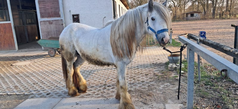 Verkauf hier meinen fast 4 jährigen Hengst. Eigentlich ist er ein Apfelschimmel, nur im Frühling ist er fast weiß. Reitschüler saßen geführt schon im Gelände auf ihm (Schritt und paar Schritte Trab) reittechnisch kann er aber noch nicht mehr. Auf Wunsch und Kostenübernahme des Käufers kann er gerne noch vor Ort gelegt werden. Er wird nur aufgrund deutlicher Bestandsverkleinerung verkauft.