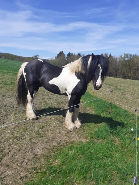 Ich verkaufe meinen lieben Tinkerhengst, hat bereits tolle Nachkommen. Er hat eine Fahrausbildung erhalten auch im Straßenverkehr sicher unterwegs. Bei mir wurde er überwiegend im Gelände geritten. Er ist absolut verträglich zusammen mit anderen Wallachen auf der Weide und sehr menschenbezogen.