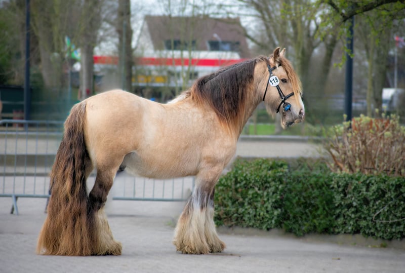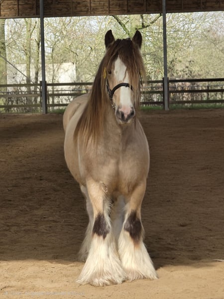 Favorit ist ein schöner Silver Buckskin Irish Cob Hengst. Er verfügt über viel Behang an den Beinen und eine schöne, korrekte Konstitution. Seine kräftige Bauart vererbt er auch an seine Nachkommen, selbst bei Stuten mit weniger schwerem Körperbau. Zudem ist er sehr großzügig mit seinen Silver- und Creme-Genen. Seine Fohlen sind in der Regel größer. Er hat bereits einige schöne Fohlen hervorgebracht und ist definitiv bei ICS NL und NSVT zugelassen. Für weitere Informationen zu ihm und Deckmöglichkeiten, nehmen Sie gerne Kontakt auf! (Genetik: E/e A/a Cr/n Z/n)