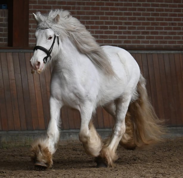 Déjà-Vu ist ein wunderschöner junger Hengst, der in diesem Jahr zum ersten Mal zur Zucht eingesetzt wird. Er zeichnet sich durch sein großartiges, ruhiges Wesen aus, das äußerst angenehm ist. Zu Hause wird er liebevoll von Kindern betreut. Mit seinem jungen Alter von 3,5 Jahren verfügt er über eine sehr schöne Konstitution und besitzt eine üppige, dichte Behangung, sowohl an den Beinen als auch an Mähne und Schweif. Er bietet die Chance, Silber- oder Cremefarben sowie das Sabino-Gen weiterzugeben. Déjà-Vu ist beim ICS NL jung genehmigt. Für weitere Informationen zu ihm und den Zuchtmöglichkeiten, nehmen Sie gerne Kontakt auf! (Kolorengenetik: e/e a/a Cr/n Z/n Sb1/n)