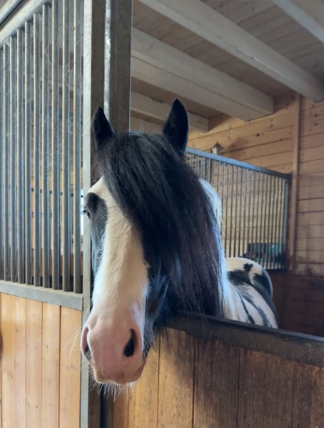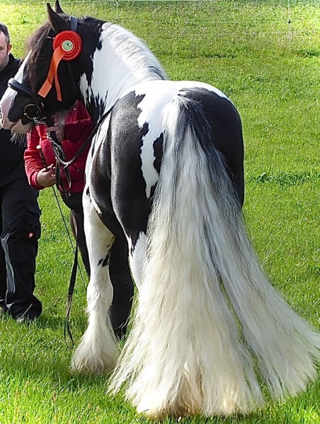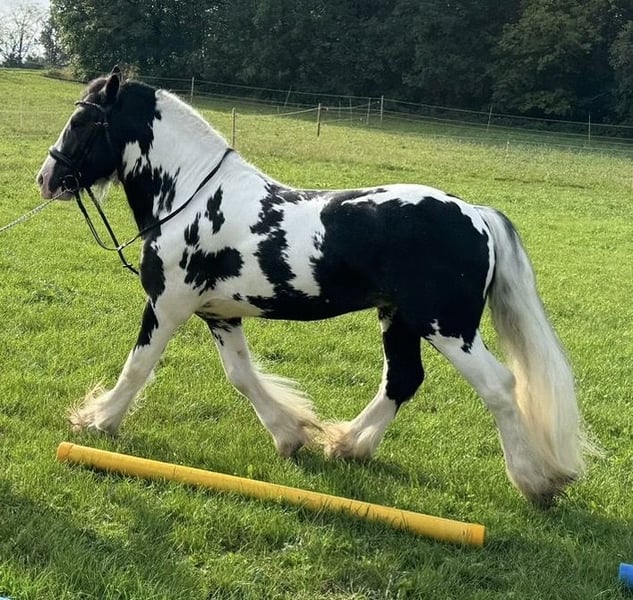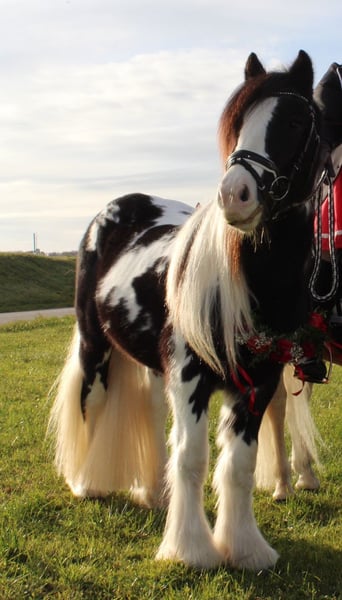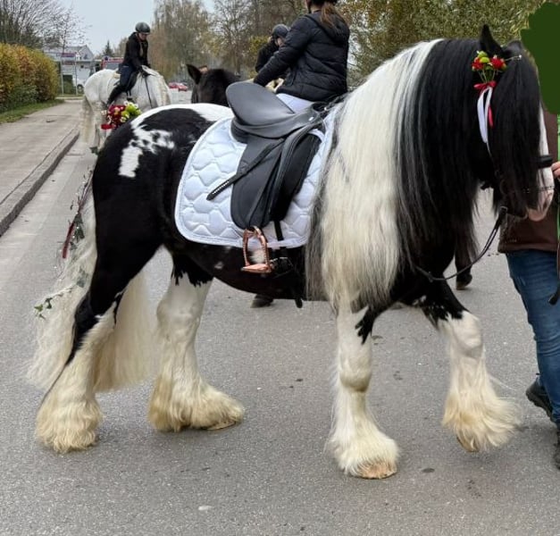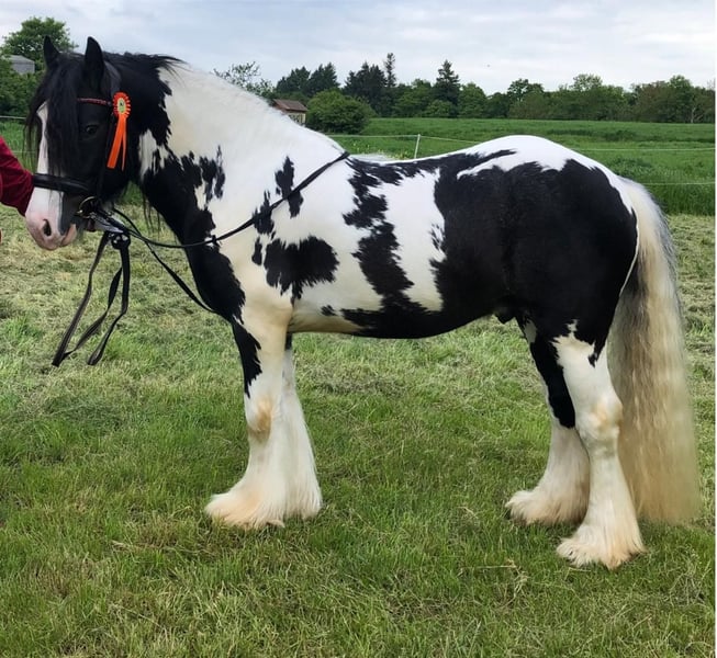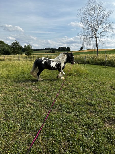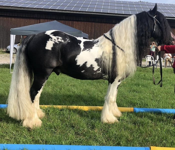 Dieser Bildhübsche Irish Cob Tinkerhengst mit viel Behang ist 2 Fach gekört und somit STER. Er überzeugt mit seinem super Charakter und seinem Aussehen. Er ist super lieb im Umgang und sehr arbeitswillig. Bodenarbeit und Spaziergänge meistert er mit Bravur. Unterm Sattel zeigt er sich gelassen und arbeitet gut mit. Seine Grundgangarten sind ausdrucksvoll und mit GO. Er kennt andere Pferde, steht auf der Koppel neben Stuten, was ihm nichts ausmacht. Zudem ist er Hunde, Katzen und Kinder gewöhnt. Bei Traktoren, Autos und Fahrrädern lässt er sich nicht aus der Ruhe bringen. Er deckt an der Hand oder im Natursprung auf der Koppel. Seine Nachkommen sind alle gesund und bekamen ebenfalls die erste Prämie. Er hat keinerlei Vorerkrankungen und ist PSSM 1 frei. Dodge ram van´t Heideveld ist beim ICS Nederland registriert. Seine Fellrabe ist dreifarbig (Schwarz, Weiß und Braun). Dieser Hengst steht Ihnen und ihrer Stute ab sofort zur Verfügung.