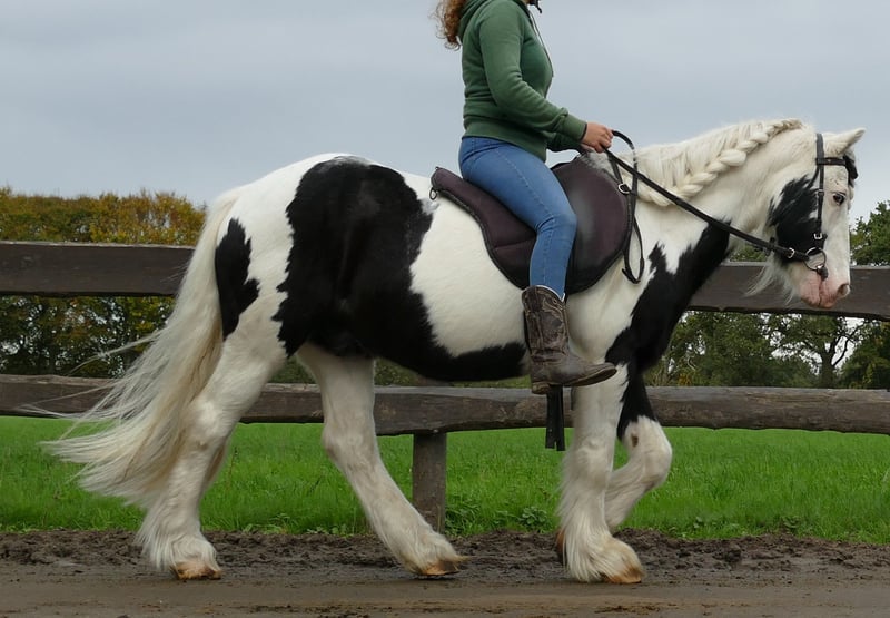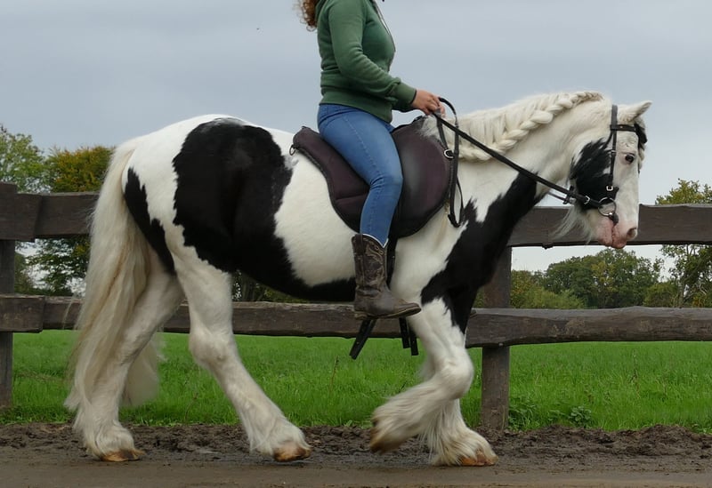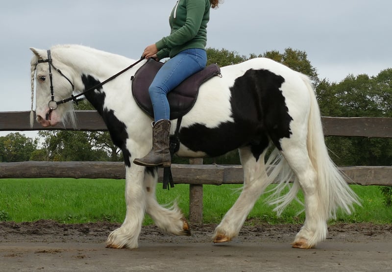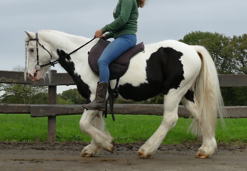 Bingo is a beautiful Tinker gelding. He is kind and well-behaved. Bingo goes off-road with the group. If you have any further questions, please call Heinrich Schulte-Übermühlen at: 01725656719
