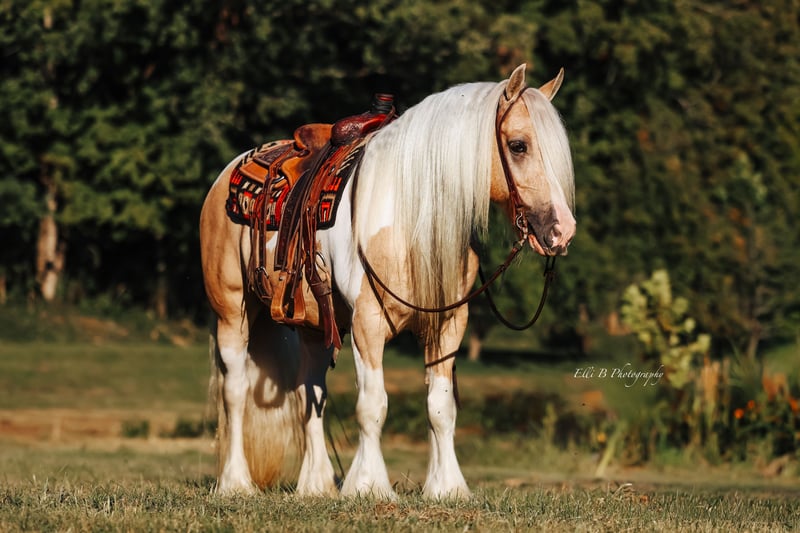 ⚜️ 𝓗𝓮𝓻𝓲𝓽𝓪𝓰𝓮 𝐖𝐢𝐧𝐭𝐞𝐫 𝓒𝓵𝓪𝓼𝓼𝓲𝓬⚜️ Happening now thru MONDAY | DECEMBER 29th - Available EXCLUSIVELY on HorseBid's website! For more details and to register visit: www.Horsebid.com CONSIGNOR CONTACT: Lucky 13 Equine 765-698-4655 LOCATION: Mount Vernon, KY BREED: Gypsy Vanner REGISTERED: No REGISTERED NAME: Roscoe COLOR: Palomino and white paint HEIGHT: 14.3 AGE: 9 GENDER: Gelding Meet Roscoe, a breathtaking 9-year-old Gypsy Vanner gelding standing 14.3 hands tall. His gorgeous palomino-and-white coat and classic Gypsy build make him an instant standout, but it’s his mind, training, and versatility that truly set him apart. Roscoe is an absolute gentleman on the trails steady, confident, and sure-footed across all kinds of terrain. Whether you’re out for a quiet evening ride or exploring new country, he stays relaxed and dependable. He’s also been to town and through busy environments, taking traffic, crowds, and commotion in stride. In the arena, Roscoe shows off his training. He takes both leads, stops, backs, turns around, side passes, and stays soft in the bridle. He has also been used extensively at exotic animal sales, moving every type of animal you can imagine. Working gates in that environment has made him extremely handy, responsive, and adaptable. Roscoe truly offers the best of all worlds beauty, brains, and a big, willing heart. He’s versatile enough for trail riding, pleasure riding, English, dressage, jumping, or driving, and kind enough for riders who want a trustworthy partner with a little extra style. If you’re looking for a stunning, well-trained, and dependable gelding that can fit into almost any lifestyle, Roscoe is your horse. Opportunities to own one like him don’t come around often!