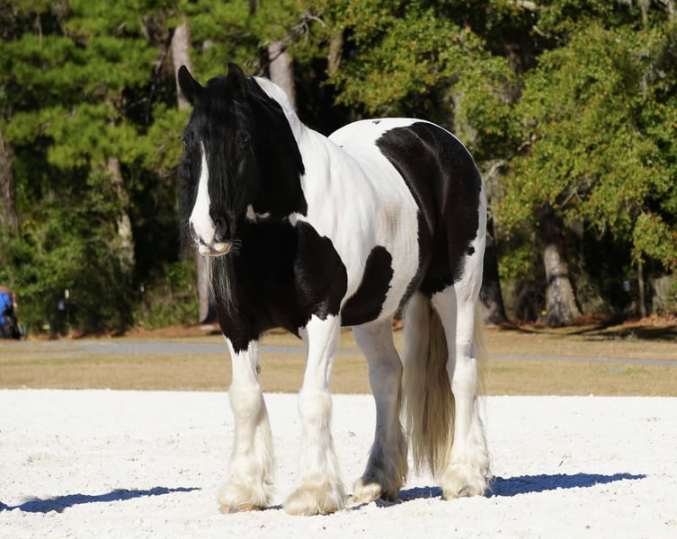 Charlie Waffles, 10 ans, 15 mains, hongre gypsy draft x noir et blanc