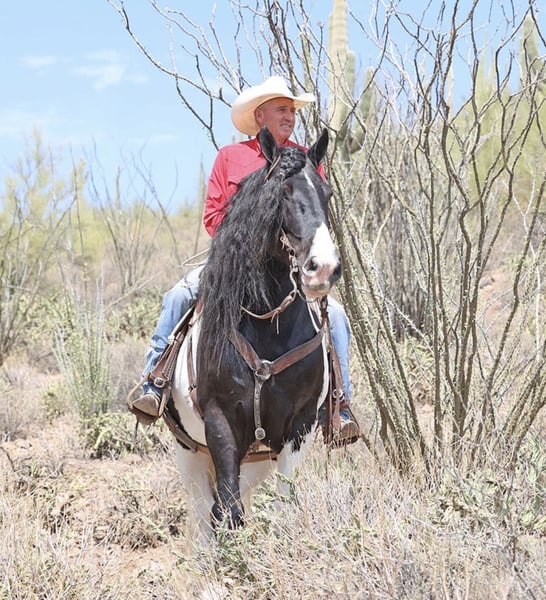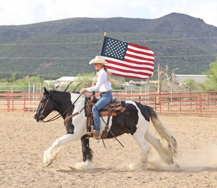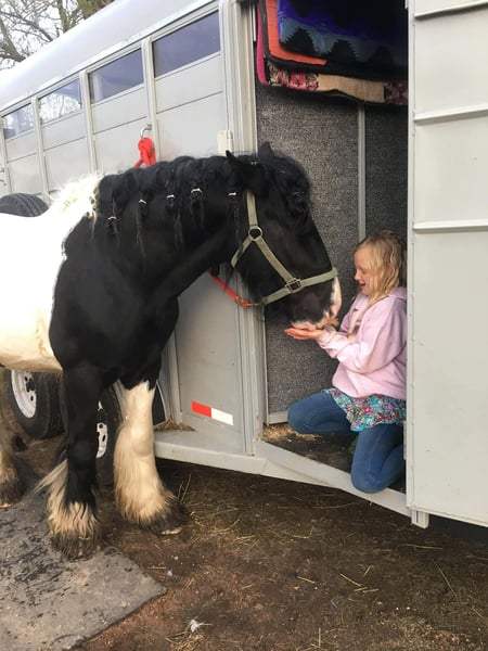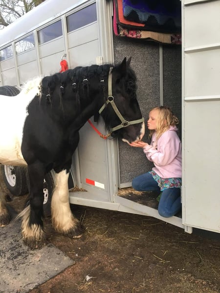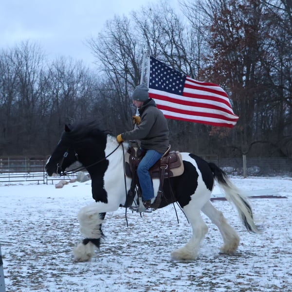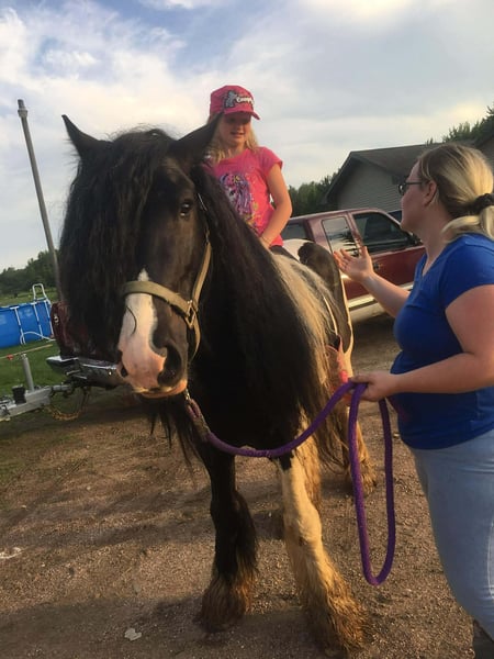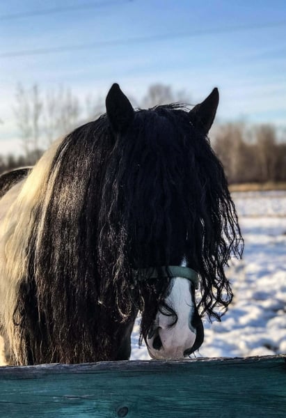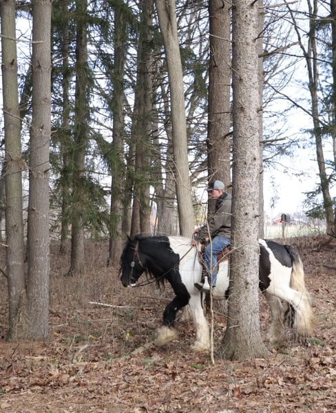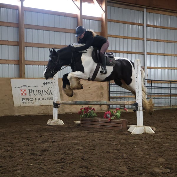 ♦️𝐍𝐄𝐖 𝐘𝐄𝐀𝐑'𝐒 𝑬𝒙𝒕𝒓𝒂𝒗𝒂𝒈𝒂𝒏𝒛𝒂♦️ Happening now thru MONDAY | JANUARY 12th - Available EXCLUSIVELY on HorseBid's website! For more details and to register visit: www.Horsebid.com CONSIGNOR CONTACT: Blackstone Stables 248-390-6831 LOCATION: Howell, MI BREED: Gypsy Vanner REGISTERED: No REGISTERED NAME: Pudge COLOR: Black and White Paint HEIGHT: 15.1 AGE: 10 GENDER: Gelding He's checking in at a solid made 15.1hh. He's a stunning black and white 12 year old gypsy vanner gelding. We are happy to introduce "Titanium's Pride" or pudge as we call him at home. His round figure and puppy dog demeanor are how he's earned his name. He has seen many miles on the trails from AZ to OR to MI and has proven himself to be a trustworthy trailblazer. Pudge has he’s got hair for days - a forelock that falls past his nose, a thick and naturally wavey mane that falls past his shoulders, a perfect tail that hits the ground and perfect feathering on all 4 legs. He looks like a picture in a magazine. His looks and conformation are no suprise as he has Tieg, The Lion King and The lion Queen on his papers. We are selling him as grade as he came with just a photo copy of his bloodlines. We have included a few baby photos of him 🙂. We are working on obtaining the original paperwork. Pudge is as kind-hearted as he is eye-catching. He truly loves his people, always the first to meet you at the gate and the last to leave your side — a true puppy-dog type. Gentle, mannerly, and calm whether you’re on the ground or in the saddle, he’s the kind you can trust every single ride. Ride him western, English, or bareback — he’s as comfortable as your living room couch and always a pleasure to ride. Pudge is steady, no-nonsense, and endlessly reliable. He’s spent time on a large working ranch checking fences, gathering cattle, and ponying colts. He has seen the rocky Arizona mountains, the deep woods of Michigan and the trails of Oregon. He will cross water, bridges, brush and ride down main roads. He is not one to notice wildlife, from elk, deer, coyotes, and birds he will remain as steady as they come. Pudge will ride out alone with plenty of confidence but will also join others in a group. Pudge has been in parades, carried the flag and has been to town. He is noticed wherever you take him and will gladly accept attention from anyone who wants to say hi. In the arena he is smooth and steady. He has 3 solid gaits, effortless transitions while being more whoa than go. He will steep right into the canter and take both leads. He also has beautiful flying changes! Pudge will stand anywhere you ask him for mounting dismounting or just in general. He is great for clipping, bathing, grooming and tacking. He's the type that can sit I the pasture and go to work once a month or every day with out issues. Pudge has been jumping around and he is fantastic at it! He's very brave to the jumps. He loads and hauls like a pro! He can live in or out and will play well with his equine buddies!Whether you’re looking for a dependable ranch horse, a safe and comfortable trail partner, a hunter type or simply a best friend Pudge is your guy.