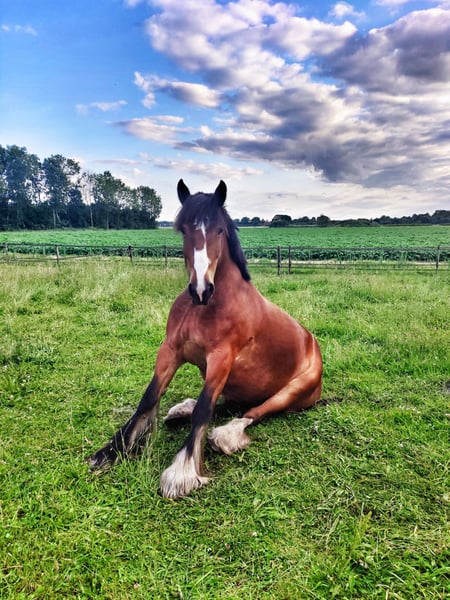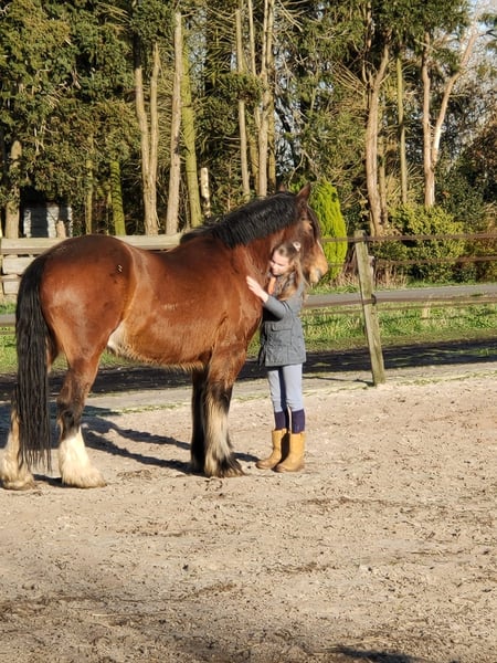Te koop: eerste premie Tinker / Irish Cob — lieve ruin met karakter Voor onze prachtige ruin zoeken wij een blijvend en passend thuis. Gegevens • Geboren: 13 april 2014 • Geslacht: ruin • Stokmaat: ca. 163 cm • Met papieren — eerste premie Tinker / Irish Cob • Vader: Majestic Shirrdan • Moeder: Shaolin Karakter Een grote, indrukwekkende Tinker met een eerlijk en heel vriendelijk karakter. Hij is nieuwsgierig, komt altijd direct naar je toe voor aandacht en vindt kriebelen, borstelen en contact met mensen heerlijk. Een lief paard zonder kwaad in zich, met een klein beetje branie. Tegelijk is hij een typische Tinker: erg slim en soms wat eigenwijs. Hij heeft rustige, consequente leiding nodig en probeert soms zijn eigen plan te trekken als de ruiter niet duidelijk is. Dat uit zich niet in bokken of iemand eraf gooien (dat heeft hij nog nooit gedaan) maar eerder in wat doorduwen of eigen keuzes maken (na drie/vier rondjes in de bak stop ik er even mee want ja, ik heb het vermoeden dat ik al een beetje moe word, of: jij wou naar links, maar ik wou graag naar rechts…). Met een zachte maar duidelijke, vooral consequente hand is hij juist een heel fijn paard om mee te werken. Daarom wellicht wel wat minder geschikt voor een beginnende ruiter. Opleiding en rijden Ondanks zijn formaat willen wij hem liever niet als rijpaard zien als je boven de 90 kg bent. Hij is beleerd volgens de Parelli-methode en is zowel bitloos als met bit gereden. Is dus ook getraind in grondwerk. Omdat hij wat sterk was voor onze dochter die nog jong was toen zij hem begon te rijden, hebben wij destijds samen met onze Parelli-instructrice gekozen voor rijden met bit. Het gebruik van een zweep en/of sporen zijn wat ons betreft een no go. Geschikt voor: • rijden in de bak • buitenritten, het liefst samen met een ander paard, hij blijft graag bij zijn kudde • grondwerk Hij is niet verkeersbang en kent tractoren en vrachtverkeer. Achtergrond Wij kochten hem destijds voor onze dochter toen zij 11 jaar oud was. Inmiddels zit zij straks in haar eindexamenjaar en heeft door school en andere interesses geen tijd meer voor hem. Dat vinden wij zonde, hij verdient een plek waar hij weer de aandacht krijgt die hij nodig heeft. Huisvesting Hij staat nu in een paddock paradise systeem: • 24/7 buiten met schuilstal in de buurt van Bellingwolde (provincie Groningen) • samen met twee andere ruinen • veel ruimte om te bewegen en natuurlijk gedrag te vertonen Hij probeert soms de baas te spelen, loopt ook graag voorop, maar wordt door zijn kuddegenoten netjes op zijn plek gezet en dat accepteert hij prima. Wij zoeken nadrukkelijk een vergelijkbare plek voor hem: 24/7 buiten in een kudde (dus niet alleen), met schuilstal en ruimte om te bewegen, of in de nacht op stal (het liefst open voor contact met andere paarden) en overdag buiten. Een plek waar hij op een afgesloten stal komt te staan, of waar paarden maar een paar uur per dag naar buiten mogen, vinden wij voor hem geen goede match. Gezondheid en verzorging • algemeen gezond • destijds klinisch gekeurd bij aankoop • gebit en gezondheid jaarlijks gecontroleerd door de dierenarts • wordt elke 8 weken bekapt Wij zoeken een blijvende, liefdevolle plek waar hij de aandacht krijgt die hij verdient. Of dat nu een plek is waar hobbymatig mee gereden wordt, alleen grondwerk gedaan wordt, of waar hij vooral een fijn maatje is. • handelaren hoeven niet te reageren • bij verkoop willen wij recht van terugkoop als hij ooit weg zou moeten • wij hebben geen haast en nemen alle tijd om een goede match te vinden de prijs is inclusief alle toebehoren: halsters, hoofdstel zadel, dekjes, borstels. Tevens een vliegendeken voor in de zomer. Meer informatie of kennismaken? Neem gerust contact op.