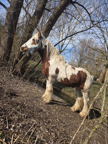 Beautiful Irish Cob gelding, 14 years old, standing at 155 cm at the withers. An absolute heart horse with a wonderful temperament. From above, not suitable for beginners, as he occasionally tests with a few bucks, but if he knows he's not going further, he will stop. He is very easy to ride, whether with a bit or bitless. He is fearless and a truly loyal companion. He has a red passport with full Irish Cob registration papers. The farrier was recently there, trimmed his hooves, and he is also vaccinated. He has experience in both English and Western riding and can also jump. As mentioned, he is an absolute heart horse with a stunning appearance and an excellent character. He will only be placed in the right hands and only if it is a perfect match. He is easy to load and stands well for the farrier.