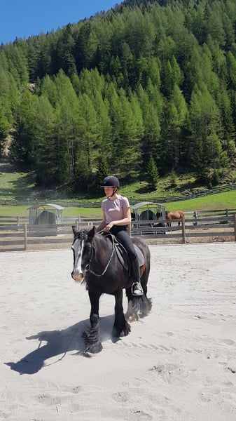 Wegen Bestandverkleinerung verkaufen wir unseren Tinker Hobbit Budy. Der Lauser ist der große Liebling aller Kinder, mit seinen blauen Augen und der wunderschönen langen Mähne verzaubert er jeden. Hobbit geht bei uns seit 6 Jahren im Schulbetrieb, er wird sowohl für Longestunden als auch Einzelunterricht eingesetzt. Da Hobbit nicht so groß ist trabt er relativ flott. Kleine Sprünge meistert er ganz gut. Hobbith ist ein super cooles Pferd für Reiter mit schon etwas Erfahrung. Am Putzplatz steht er brav und lässt sich von Kindern striegeln und verwöhnen, auch beim Hufschmied ist er brav, er geht barhuf. Hobbit ist regelmäßig geimpft und entwurmt und die Zähne gemacht. Hobbit kennt Boxenhaltung, Weidehaltung und Paddock Haltung.