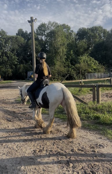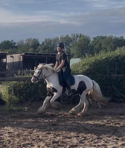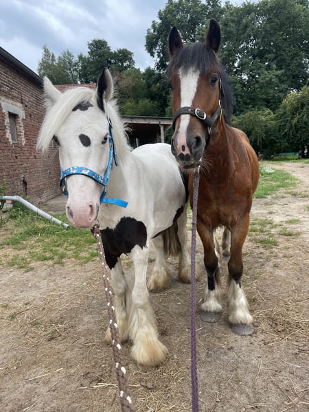 For sale is this beautiful 3-year-old Irish Cob gelding with a height of approximately 135 cm. Fizzy is an incredibly charming and loyal heartthrob! He is easy to ride, responsive to aids, and always gives 101%! He knows how to tackle obstacles and loves trail rides—he is very calm and fearless! He has a pleasant and relaxed go! He is always motivated at work and eager to please. He is easy to ride in contact—even for children!! Very comfortable and pleasant movements. Perfect for relaxing and unwinding. Super cuddly and people-oriented. Furthermore, this golden treasure is also driven single! The absolute dream pony for re-riders, leisure riders, and children. He is familiar with riding in groups and has no problem with it—he can be found at the front, in the middle, or at the back—he loves the terrain and is absolutely reliable both alone and in a group! He comes directly from Ireland and is now waiting for his dream home! Also suitable for riding schools!