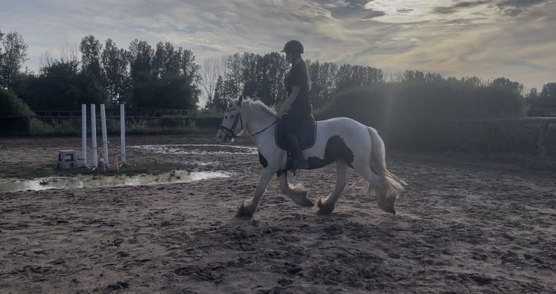 Te koop is deze prachtige 3-jarige Irish Cob ruin met een schofthoogte van ongeveer 135 cm. Fizzy is een ongelooflijk sympathieke en trouwe charmeur! Hij is eenvoudig te rijden, fijn aan de hulpen en altijd met 101% inzet! Hij kent het om hindernissen te overwinnen en houdt van buitenritten - daarbij is hij zeer zenuwsterk en onverschrokken! Hij heeft een aangenaam en rustig GO! Bij het werk is hij altijd gemotiveerd en wil hij graag voldoen. Eenvoudig in aanleuning te rijden - ook door kinderen!! Zeer comfortabele en aangename bewegingen. Perfect om te ontspannen en tot rust te komen. Super aanhankelijk en mensgericht. Daarnaast is deze goudschat ook eenspanig gereden! Het absolute droompony voor herintreders, recreatie ruiters en kinderen. Kent afdeling rijden en heeft daar geen probleem mee - loopt vooraan, in het midden, maar ook achteraan - Hij houdt van het terrein en is daar absoluut betrouwbaar, zowel alleen als in een groep! Hij komt rechtstreeks uit Ierland en wacht nu op zijn droomhuis! Ook geschikt voor rijscholen!