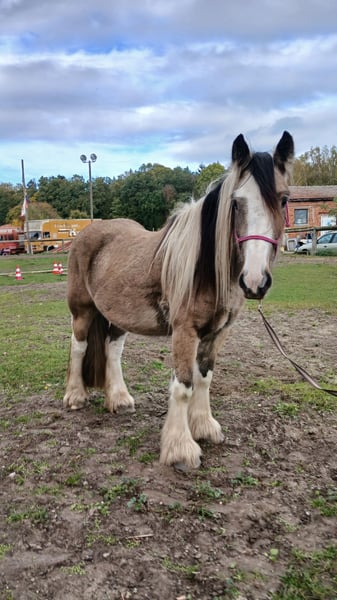 Hier kommt dein Traumpferd! Ein Irish Cob Wallach in einer absolut tollen Farbe - Buckskin Tobiano- mit einer langen wallenden Mähne! Pepe ist ein Chameur durch und durch. Er liebt es bekuschelt und betüddelt zu werden. Er lässt sich geduldig stundenlang seine Mähne und Fell bürsten. Gibt brav die Hufe und lässt sich super vom Boden arbeiten. Pepe wurde bereits longiert mit Sattel und kennt das Reitergewicht. Hierbei ist er sehr brav. Er steht in Robusthaltung in einer gemischten Herde und läuft Barhuf. Geb 5/22 EM ca 145Cm Papier vom ICS nl