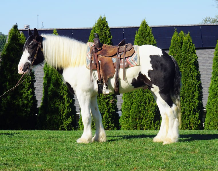 ⚜️𝐓𝐇𝐄 𝐅𝐀𝐋𝐋 𝐇𝐄𝐑𝐈𝐓𝐀𝐆𝐄 𝐂𝐋𝐀𝐒𝐒𝐈𝐂⚜️ Happening now thru MONDAY | NOVEMBER 3rd - Available EXCLUSIVELY on HorseBid's website! For more details and to register visit: www.Horsebid.com CONSIGNOR CONTACT: The Heart & The Horse 330-763-4575 LOCATION: Urichsville OH BREED: Gypsy Vanner REGISTERED: Yes REGISTERED NAME: Silhouette Farms Commissars Comanche COLOR: Black & White HEIGHT: 15.2 AGE: 3 GENDER: Gelding Everyone meet Comanche. Comanche is a 3 year old gypsy gelding, standing approx 15.2 hands. Comanche has been started under saddle around 90 days, and has a great foundation, both on the ground and under saddle. He has a very sweet, laid back disposition, making him an exeptionanl individual to be around. He has had time riding in the arena, learning to soften to pressure, and building a great foundation on his WTC. He has been ridden on the road, and exposed to traffic, and does great with obstacles. If your looking for a gypsy gelding with a great foundation, and disposition Comanche might just be they guy for you. If you have any questions feel free to reach out.