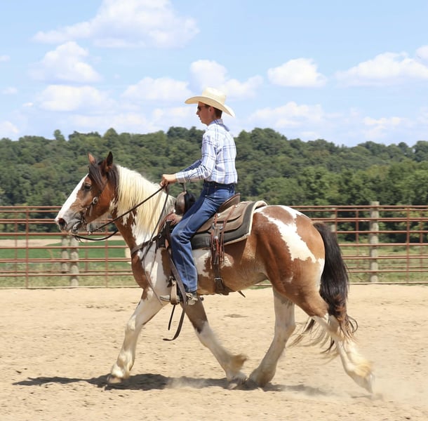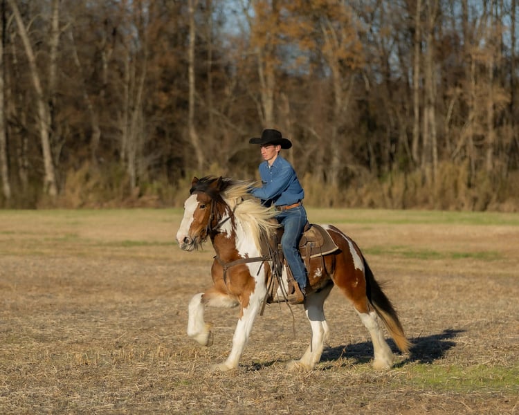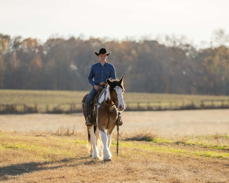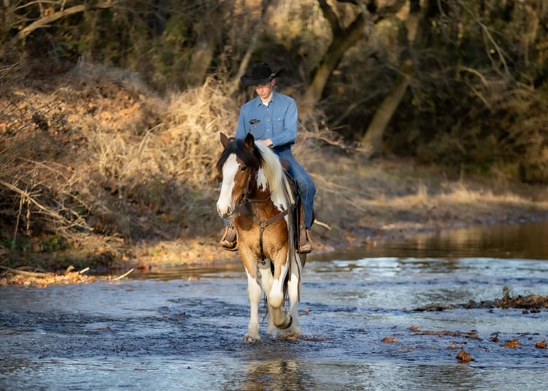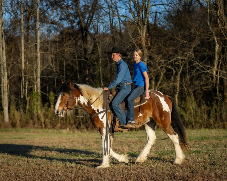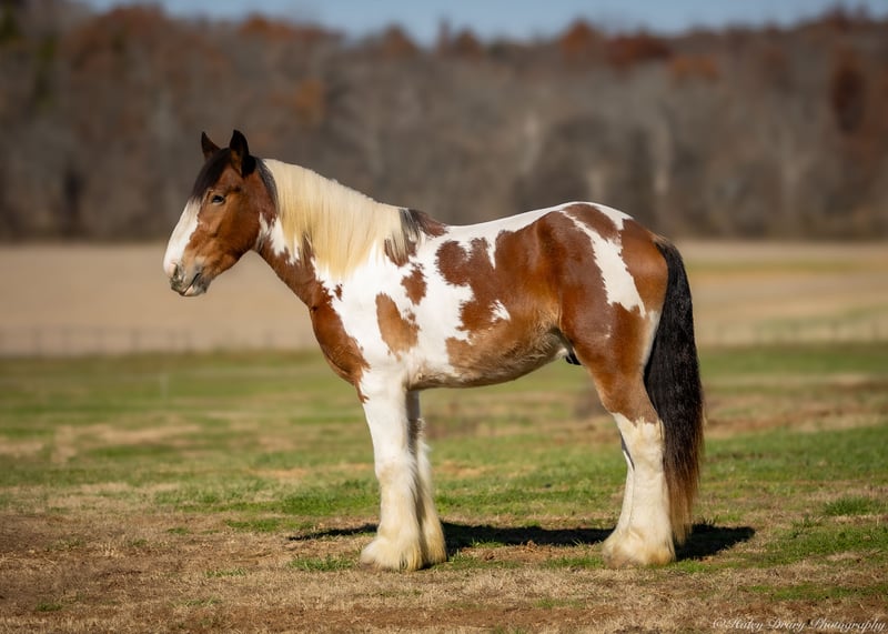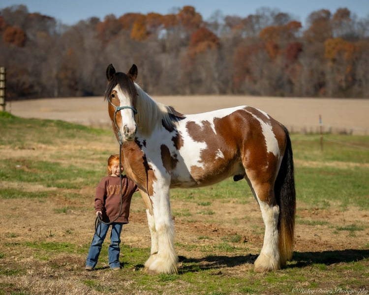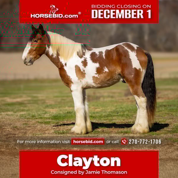 ⚜️ 𝓽𝓱𝓮 𝐇𝐨𝐫𝐬𝐞𝐦𝐚𝐧'𝐬 𝓢𝓱𝓸𝔀𝓬𝓪𝓼𝓮⚜️ Happening now thru MONDAY | DECEMBER 1st - Available EXCLUSIVELY on HorseBid's website! For more details and to register visit: www.Horsebid.com CONSIGNOR CONTACT: Jamie Thomason 270-772-1706 LOCATION: Auburn, KY BREED: Gypsy Drum REGISTERED: No COLOR: Bay Paint HEIGHT: 15.3 AGE: 3 GENDER: Gelding Add a little color to your barn with this one of a kind gelding who brings quiet confidence to every ride! He’s personable and gentle, with that laidback, husband safe attitude everyone wants, but rarely finds. On the trail he’s calm, steady, and sure of himself, whether you’re out for a quick loop or heading off on an overnight camping trip. Safe for guests and dependable enough to help with ranch chores, he’s a trustworthy partner with the feel of an old soul. Clayton is a 3 yr old, bay paint, Gypsy Drum gelding, currently standing 15.3 hands, & he’s ready for his next best friend! Clayton has spent this past summer with us logging miles of trails, working on a cattle operation, and serving as the “go to” When my teenagers organize a weekend camping trip with their non horsey friends. He’s the one we load up every time when we need a steady mount for someone who doesn’t have a horse to ride. Clayton has been trusted to come along on numerous trails across various states. He ties on a line over night, is always quiet, and provides the same safe experience every time. Clayton crosses water, goes up and down inclines, navigates rough terrain & downfall with ease. A more whoa than go style. Clayton is an asset on the farm. We use him to gather cattle alongside working stock dogs, to rope & doctor calves. There’s nothing he isn’t willing to try, a true working partner. Clayton is young, but wise beyond his years. He is gun safe, traffic safe, carries the flag, and is unbothered by the tarp. We’ve rode up on various wildlife including deer & turkey and he just carried on. His daily life includes working alongside ATV/UTV’s, large farm equipment, and other livestock, I’m convinced there’s nothing he hasn’t seen. Whether you’re searching for a safe and steady trail horse, a dependable ranch partner, or simply an enjoyable ride right at home, Clayton is your guy. He’s the kind you can count on every time you swing a leg over. If you would like to meet Clayton or have any other questions prior to adding him to your family, feel free to reach out! PPE’s welcome! We can assist in arranging shipping to anywhere! Contact Jamie @ 270-772-1706 Located in Auburn, KY