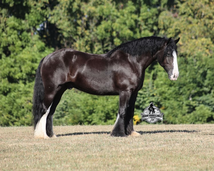 Go to visit our website for more pics and a video www.AdamsHorseAndMuleCo.com AHAMC has been in the horse business and sold horses over the internet since 2005. We have a long track record of success with hundreds of happy customers. We work hard to match riders with the correct horses and specialize in beginner safe, family friendly horses that have been used and checked out by our family! We can set up transportation anywhere in the US and look forward to working with you. Blazing Arrows is as royal and cool as any horse that you will see! He is a beautiful black registered Gypsy Vanner Gelding that stands around 15hh and he is coming 5 years old. Arrow has that eye appeal but the best part about him in deeper than the eye can see. Arrow is everyone's best friend as he loves attention and is very calm natured. Arrow has been through the natural horsemanship program and knows some tricks such as to lay down and set on him rump. He has been ridden by every member of our family all the way down to our 6 year old daughter. He has been ridden down the highways and he is traffic safe as well. Arrow is great on trails and he will cross creeks, ditches, logs and navigate rough rocky areas. He has a smooth jog, a VERY VERY nice easy to set lope and a good stop! He neckreins around and backs with ease. He has been exposed to all kinds of wildlife such as deer or turkey or other animals like cows or dogs and will go anywhere that he is asked too. He has been ridden many miles in the mountains of Eastern Kentucky and encountered every obstacle possible on the trail. He will go up or down even the steepest slopes, across deep creeks, over downed trees, and over all types of rough terrain while still being sure footed. Arrow is not cinchy, cold backed, does not crib or weave. In addition to riding, Arrow has also been drove under harness. This Arrow is sure to hit the bullseye!!! Feel free to call Eric 606-308-2461 with any questions.