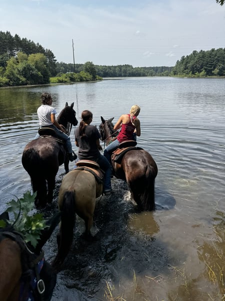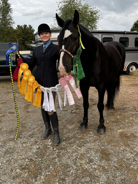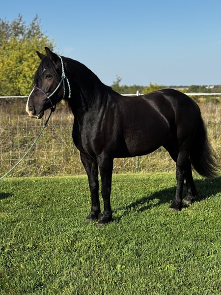 ⚜️ 𝓽𝓱𝓮 𝐇𝐨𝐫𝐬𝐞𝐦𝐚𝐧'𝐬 𝓢𝓱𝓸𝔀𝓬𝓪𝓼𝓮⚜️ Happening now thru MONDAY | DECEMBER 1st - Available EXCLUSIVELY on HorseBid's website! For more details and to register visit: www.Horsebid.com CONSIGNOR CONTACT: AJ Acres 920-251-5127 LOCATION: Pickett, WI BREED: Gypsy Cross REGISTERED: No REGISTERED NAME: AJA Black Shadowy Knight COLOR: Bay HEIGHT: 14.1 AGE: 5 GENDER: Gelding Shadow rides and drives; he is a horse that excels at whichever task you give him and aims to please. He is lovingly adored by his youth and adult riders, and enjoys attention from all humans. Shadow dominates in the show ring with his eye-catching movement. He has been successfully shown by youth and adults in hand, western, English, saddleseat, over cross rails, and speed events - placing competitively in each discipline! Not only does he prove himself with his show performance, Shadow has the sound and sane mind to take you safely down the trails. He has been hauled all over to multiple state parks, racked on tons of trail miles, crosses water and bridges, follows or leads. He’s used to dogs running around him during schooling and is not bothered by traffic. He has been stalled for weekend shows and stands well for bathing/banding/grooming. He has been ridden in our local 4th of July parade and loved all the attention! He’ll pick you up at the mounting block, greet you at the gate, and be happy to clock in to work for the day. Shadow knows voice commands (driving) and is attentive to leg, hand, and seat commands under saddle. He has beautiful gaits, knows his leads, pivots nicely, and has a great stop. He would excel in dressage, but could go any direction his next partner wants to go and will put forth the effort to do it successfully. Shadow truly is a special horse who will make someone a fantastic partner. We’re going to be sad to see this one go! Ties, loads, hauls, bathes, clips, etc. UTD all cares (chiro, worm, teeth, feet, vacc). Front shoes for show season. Will have current health certificate/PPE. Located Pickett, Wi. Hauling available.