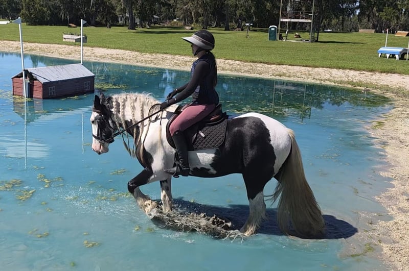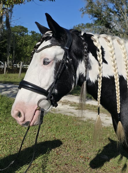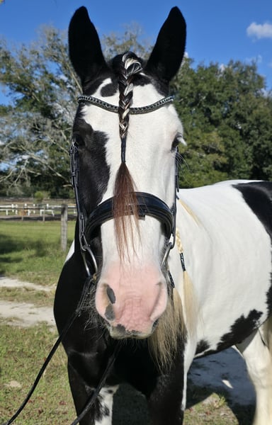 🎲𝓽𝓱𝓮 𝐑𝐈𝐃𝐄𝐑'𝐒 𝓒𝓱𝓸𝓲𝓬𝓮🎲 Happening now thru MONDAY | NOVEMBER 17th - Available EXCLUSIVELY on HorseBid's website! For more details and to register visit: www.Horsebid.com CONSIGNOR CONTACT: Show Me Sport Horses 352-467-5695 LOCATION: Ocala, FL BREED: Gypsy Vanner REGISTERED: Yes REGISTERED NAME: Sir Karryghan COLOR: Piebald HEIGHT: 15.1 AGE: 6 GENDER: Gelding Sir Karryghan 👑 Ocala, FL Offered for sale exclusively on HorseBid.com! Sir Karryghan is a stunning 6yr 15.1h Gypsy Vanner gelding registered with GVHS. He does dressage, working equitation, trail riding, trail obstacle, jumping, and cross country. He rides english and western and has one of the smoothest canters you will ever ride. Karryghan is a barn favorite! He loves attention and will greet you with a sweet knicker every day. He is a dream horse for a rider wanting a beautiful and tall Gypsy Vanner talented in many riding disciplines. Sound barefoot and up-to-date on vaccines, Coggins, floating, deworming, and hoof trimming. Please call Rachel with Show Me Sport Horses at 352-467-5695 with any questions. Shipping is available anywhere in the country.