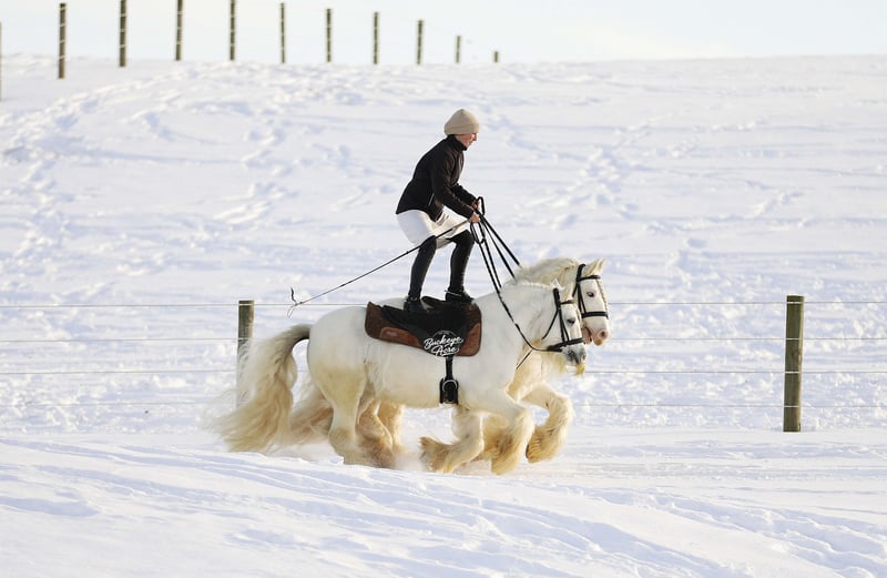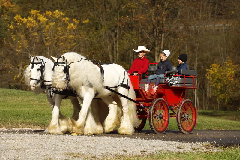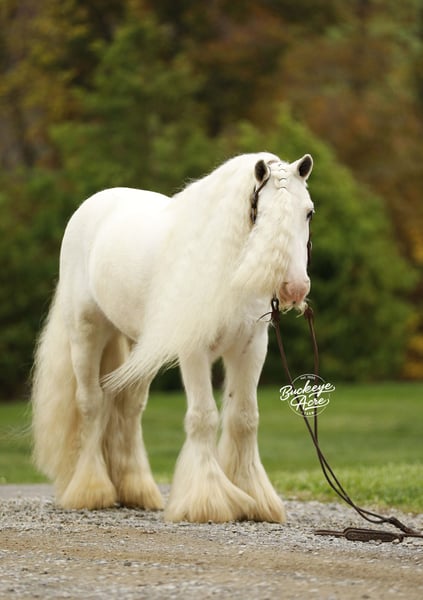 If fairytale horses were real, Vanilla & Cream would be standing right in front of you. This breathtaking pair of Irish Cob geldings is truly one of a kind, blending eye-catching beauty with real-world experience and exceptional versatility. Snow white with long, flowing, fluffy manes and tails, they are guaranteed to stop traffic and steal hearts wherever they go. These 2018 model geldings are standout individuals who also shine as a matched pair. Vanilla stands 12.3 hands tall and Cream is 13 hands, making them an almost perfect match in size and presence. They ride western, English, and bareback, they drive, side pass with ease, and are even being ridden Roman riding, highlighting their balance, trust, and incredible minds. Whether in the arena, on the trail, or heading through town, Vanilla & Cream step up confidently and stay consistent. They have been in town, on busy state roads, and through heavy stop-and-go traffic without missing a beat. Parades, pony parades, crowds, noise, and excitement are all just another day at the office for these two. We proudly had them at our local parade, where they handled everything like seasoned professionals and were a crowd favorite. Vanilla & Cream are imported from Ireland, adding to their rarity and value. They are safe for any level of rider or driver and have a true want-to-be-your-friend kind of attitude. In the barn, wash bay, and with the farrier, they are easy, respectful, and pleasant to handle, and they are often the first ones to meet you at the gate. Out on the trail, they are relaxed, steady, and enjoyable, always happy to head out and see what is next. Both geldings are honest, dependable, and truly enjoy having a job. They are up to date on all vaccinations, deworming, and farrier care, making them ready to step right into their next home. If you are looking for something that no one else has, not even your neighbor, we honestly believe Vanilla & Cream could be it. A rare, show-stopping pair like this does not come along often. For more information, please feel free to reach out to Duane at 330-231-2324 or to schedule a day to stop by and see them. We would love to welcome you out and give you a ride.