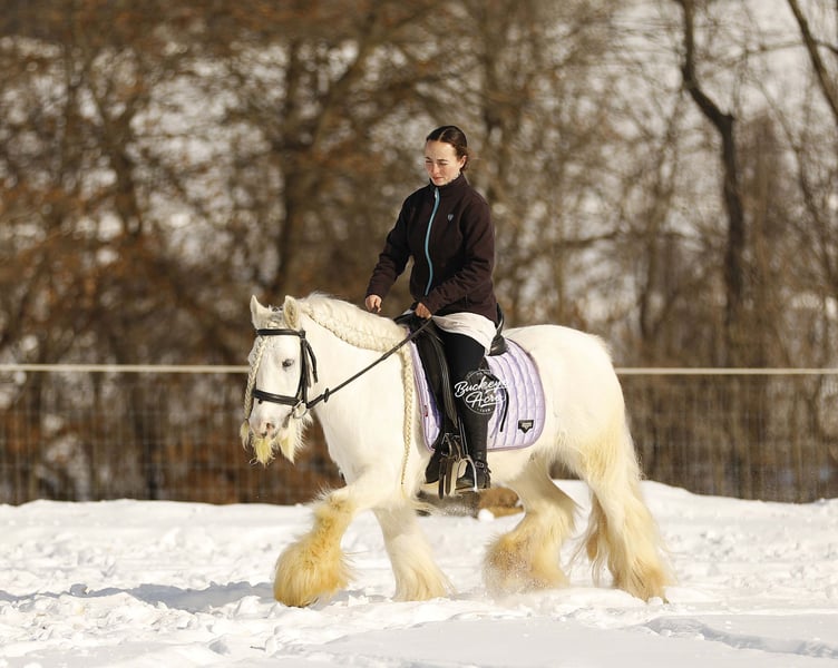 Wenn Märchenpferde Wirklichkeit wären, stünden Vanilla & Cream direkt vor Ihnen. Dieses atemberaubende Paar irischer Cob-Geldings ist wahrlich einzigartig, verbindet beeindruckende Schönheit mit echtem Erfahrungsschatz und außergewöhnlicher Vielseitigkeit. Schneeweiß mit langen, wallenden, flauschigen Mähnen und Schweifen ziehen sie garantiert alle Blicke auf sich und erobern Herzen im Handumdrehen. Diese 2018 geborenen Geldings sind herausragende Individuen, die auch als eingespieltes Paar glänzen. Vanilla ist 12,3 Hand groß, Cream misst 13 Hand – somit sind sie in Größe und Ausstrahlung nahezu perfekt aufeinander abgestimmt. Sie reiten Western, Englisch und Barhuf, ziehen Kutsche, passen mühelos seitwärts, und sogar Romanreiten wird mit ihnen geübt, was ihre Balance, ihr Vertrauen und ihren beeindruckenden Geist unter Beweis stellt. Ob im Dressurviereck, auf dem Trail oder in der Stadt – Vanilla & Cream treten selbstbewusst auf und bleiben stets zuverlässig. Sie haben bereits in der Stadt, auf belebten Landstraßen und im dichten Stop-and-Go-Verkehr ihre Ruhe bewahrt. Paraden, Ponyparaden, Menschenmengen, Lärm und Aufregung sind für die beiden nur ein weiterer Tag im Büro. Bei unserem örtlichen Umzug waren sie professionell, souverän und bei den Zuschauern äußerst beliebt. Vanilla & Cream stammen aus Irland, was ihre Seltenheit und ihren Wert zusätzlich steigert. Sie sind für jeden Reiter- oder Fahrniveau geeignet und haben eine echte „Ich-möchte-dein-Freund-sein“-Einstellung. Im Stall, in der Waschbox und beim Hufschmied sind sie unkompliziert, respektvoll und angenehm im Umgang – oft sind sie die Ersten, die an der Pforte auf Sie warten. Auf dem Trail sind sie entspannt, ruhig und ausgeglichen, stets bereit, aufzubrechen und Neues zu entdecken. Beide Geldings sind ehrlich, zuverlässig und genießen es, eine Aufgabe zu haben. Sie sind auf dem neuesten Stand bei Impfungen, Entwurmung und Hufpflege und somit bereit, in ihr neues Zuhause umzuziehen. Wenn Sie nach etwas suchen, das sonst niemand hat – nicht einmal Ihr Nachbar –, glauben wir ehrlich, dass Vanilla & Cream genau das sein könnten. Ein seltenes, umwerfendes Paar wie dieses gibt es nicht alle Tage. Für weitere Informationen wenden Sie sich bitte an Duane unter 330-231-2324 oder vereinbaren Sie einen Termin, um sie persönlich zu sehen. Wir würden uns freuen, Sie willkommen zu heißen und Ihnen eine Probefahrt zu ermöglichen.