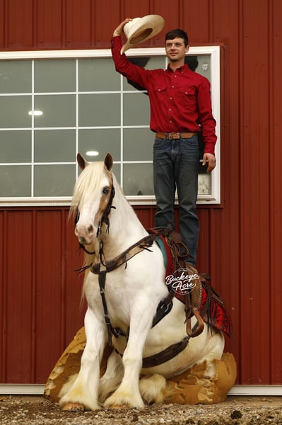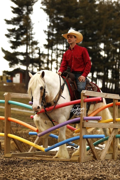 I started my journey in the horse industry in 1995 when I purchased my very first pony at 11 years old. I spent an entire year devoted to training, riding,, and teaching him fun tricks like laying down, sitting, and bowing. I sold him later that year; the feeling of providing a well trained, well behaved, horse was so rewarding that I felt I wanted to continue to share my gift. In 2007, I married my awesome wife Miriam, and we have been blessed with six incredible children (two daughters and four sons) that participate daily with the operation of the farm. What started as myself and a dream has become the full time commitment of my family, and ten employees. The opportunity to share our horsemanship has been so rewarding. In kind, we have been so blessed to learn from professional experts and knowledgeable friends that have voluntarily poured into us their invaluable years of knowledge. Our program has developed, changed, and grown along the way to ensure that we are producing a quality horse that we know we can stand behind. We start by carefully evaluating each horse before purchase. We specialize in quality quarter horses, draft crosses, and also Friesian and Gypsy crosses, from performance to trail riding to leisure. After selection, we take the horse through our groundwork program to get connected with them as individuals. We take them through obstacles and trail ride them, exposing them to anything they may ever encounter. Then, we give the horses a break for up to one month. This allows us to see how the training will stick with them. If they come back in the same place they were before the break we know they are ready to move through the rest of the program and become finished Buckeye Acre Farm horses, learning all of the fun crowd pleasing tricks. We feel we have one of the best soundness guarantees in the business, and we will stand behind that. This has been an awesome journey, and God continues to bless and humble us each and every day. All of us, from our children to our employees, want to provide the best quality horses that you and your families will enjoy for years to come. Over the years we have experienced that the horse market changes, but also that a quality horse is always in high demand. If you see a horse that meets your needs, please reach out to us. I look forward to your call, and to speaking with you personally about your next equine partner. May God bless your day.